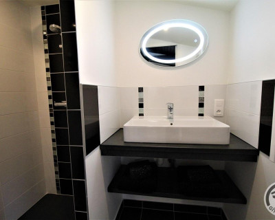 À l'extérieur : très grand parking (possibilité de stationner une grande remorque), cour en pavé, coin pelouse avec terrasse ombragée et salon de jardin, transats.