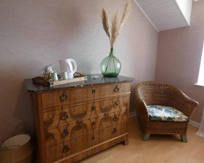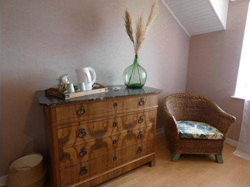 Les 3 chambres d'hôtes sont aménagés à l'étage supérieur et disposent toutes d'une salle d'eau avec toilettes, privative.