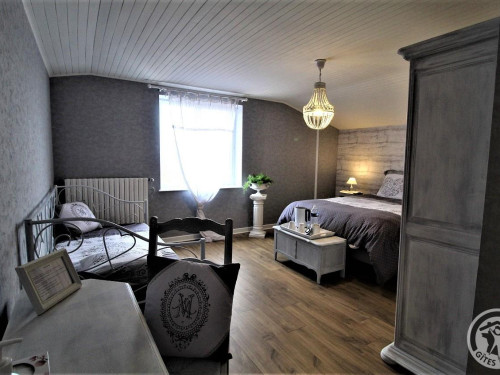 La chambre "Houillette" est équipée d'un lit en 1.60 pouvant être séparé en 2 couchages et d'un lit 1 personne