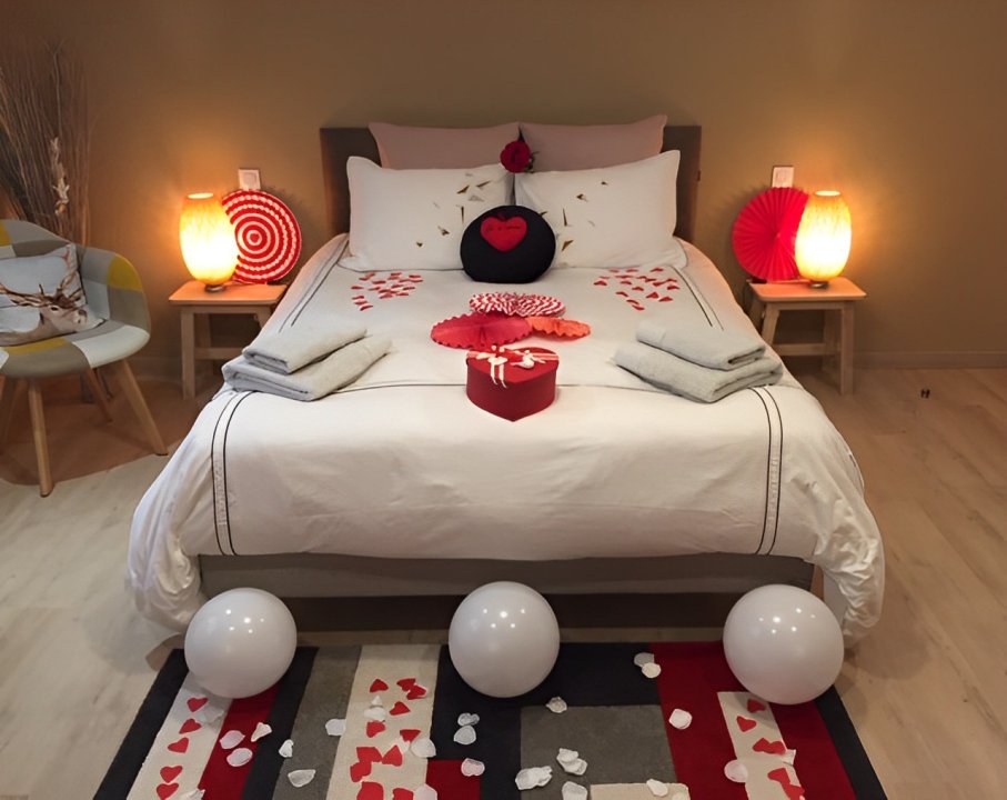 La chambre est équipée de 2 fauteuils et d'un bureau.