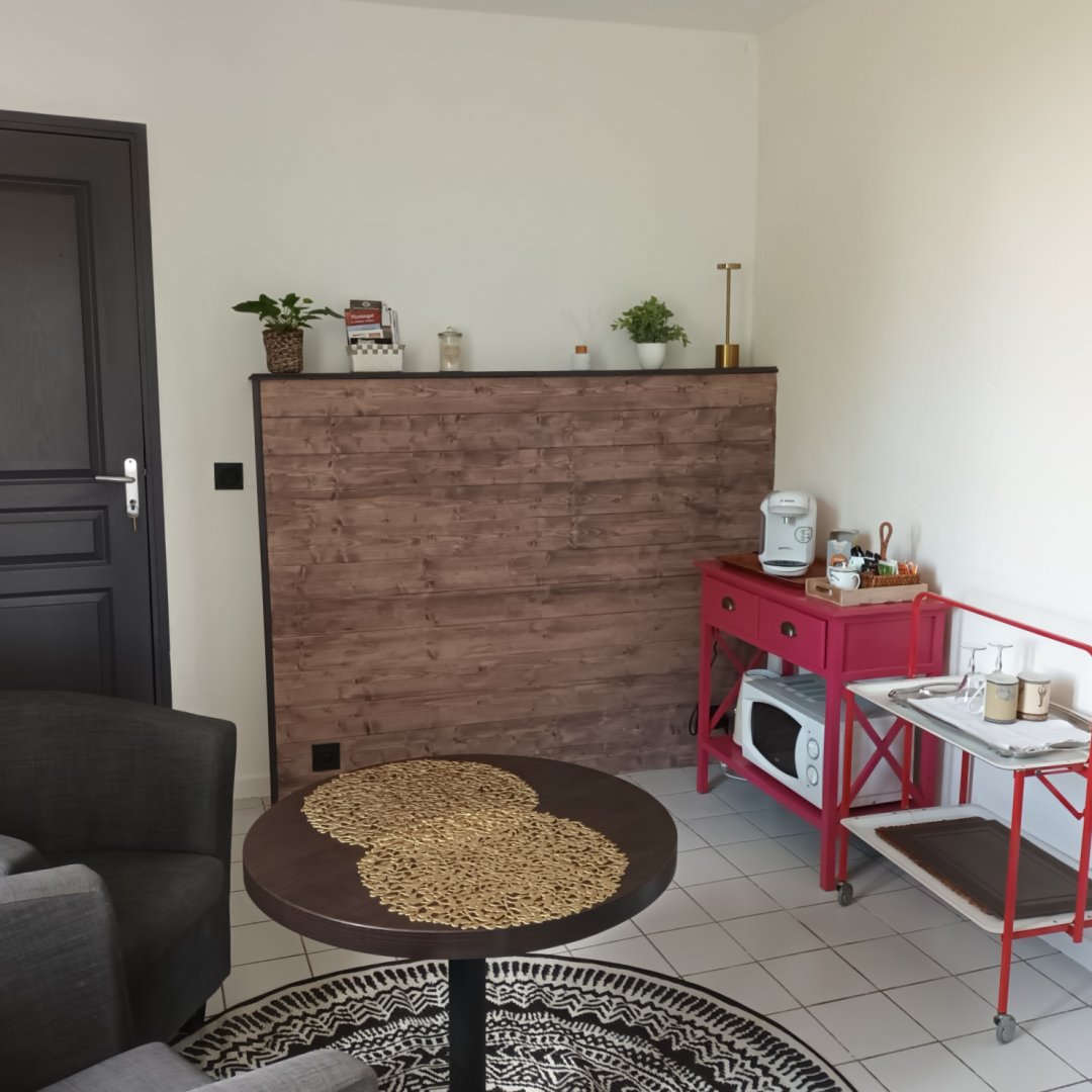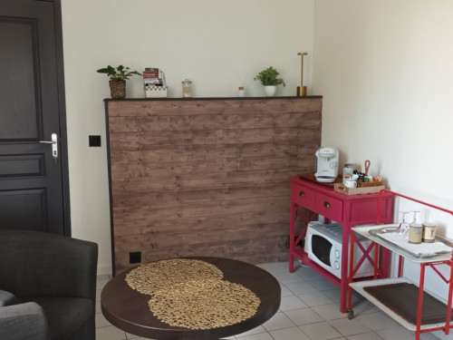 A votre disposition : un four micro-ondes, une bouilloire et une machine à café.
