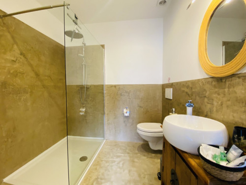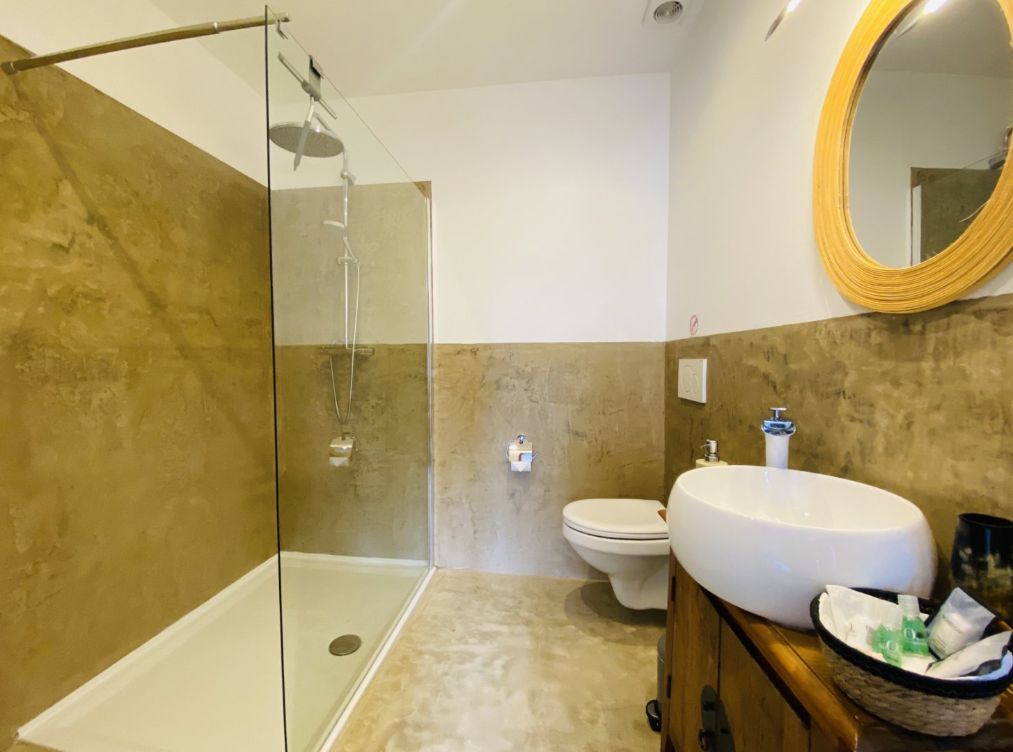 Douche, lavabo et WC sont dans la chambre (ne sont pas dans une pièce séparé)