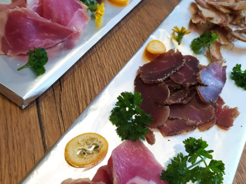 Une terrasse privative avec mobilier de jardin et un balcon avec une belle vue sur les collines environnantes