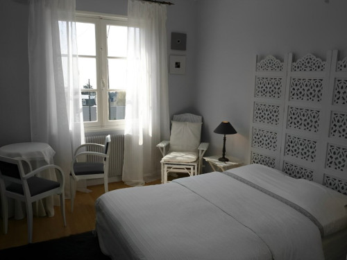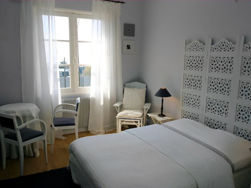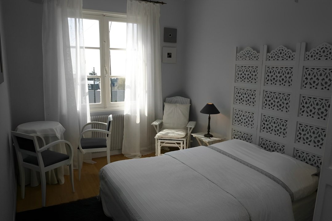 un petit frigo, une bouilloire, elle ne dispose pas de télévision, mais d'une connexion Wi-Fi gratuite. La salle d'eau privative se situe au rez-de-chaussée ainsi que les toilettes ( sèche cheveux, serviettes de toilette ). Le stationnement se fait devant la maison. Pour la paiement chèque ou espèces.