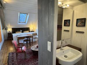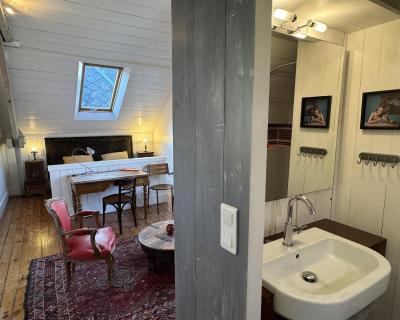 Cette chambre lumineuse et aérée comprend une machine à café à capsules et un coin salon. Sa salle de bains privative est pourvue de toilettes.