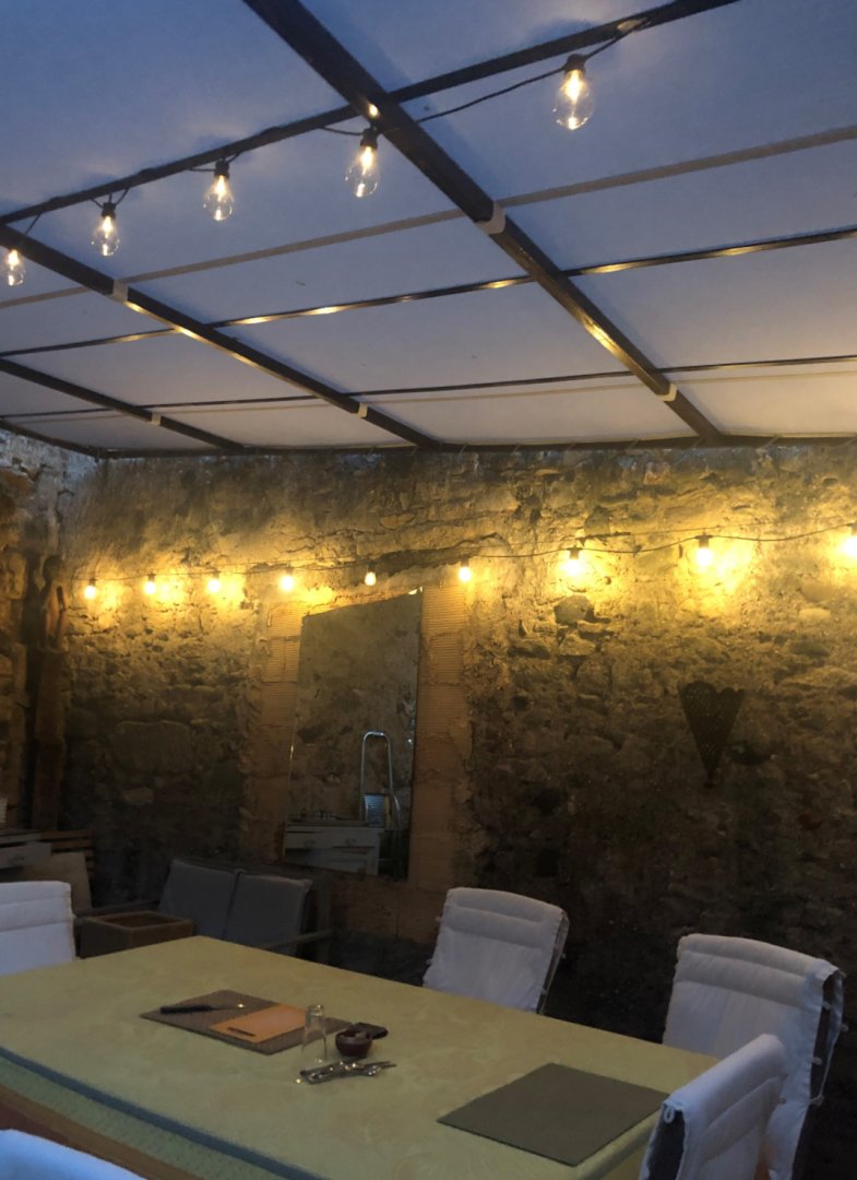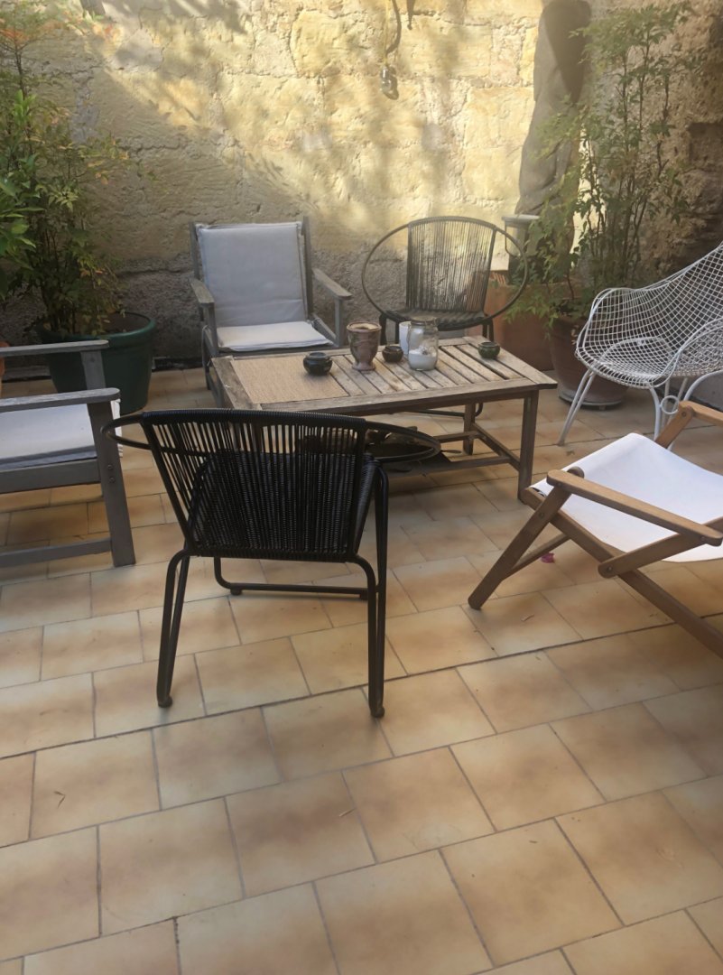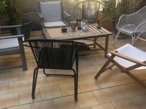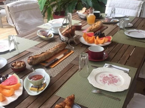 A la belle saison les petits déjeuner sont servis sur la terrasse au premier étage