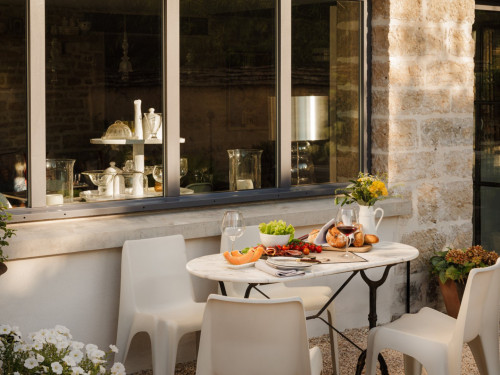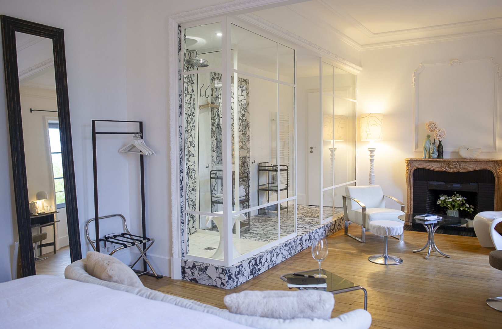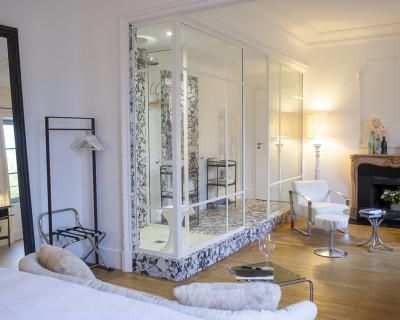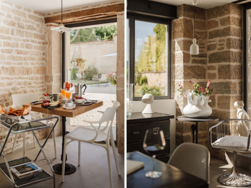 La chambre Côté Beaune est un véritable cocon intimiste, idéal le temps d’un week-end de luxe à La Cour ou pour un court séjour à Beaune.