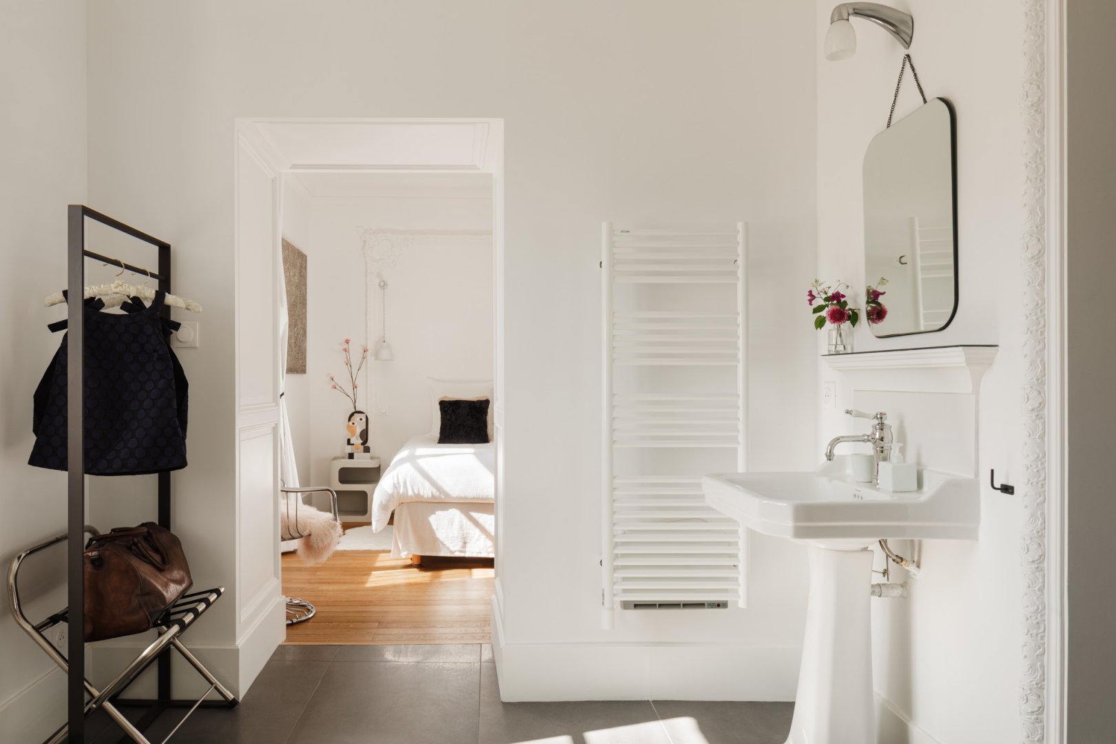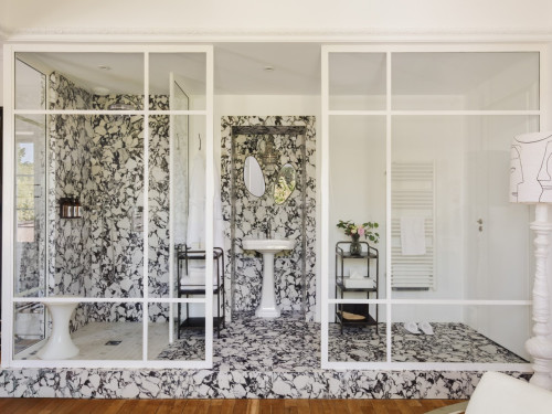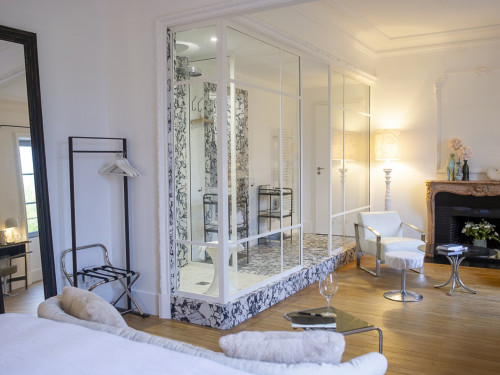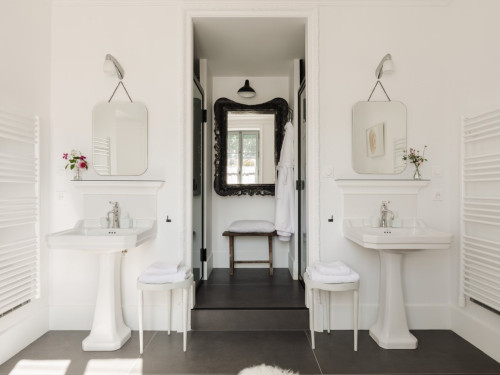 Le boudoir dessiné tout en harmonie propose un espace plus intime pour la salle de bain ou chacun choisi sa place.
