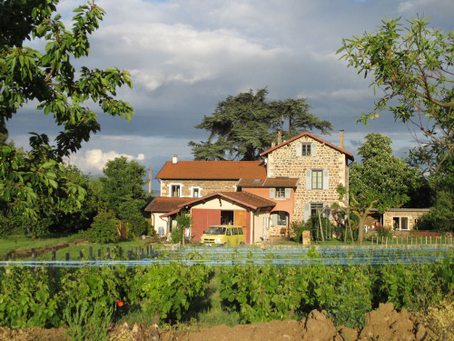 Sortie Belleville N°30 sur l'autoroute A6 (au nord de Lyon). Suivre la direction Beaujeu sur la D337. A Cercié tourner à gauche direction St Lager. Traverser le village direction Odenas. La maison est à 200m du panneau fin de village.