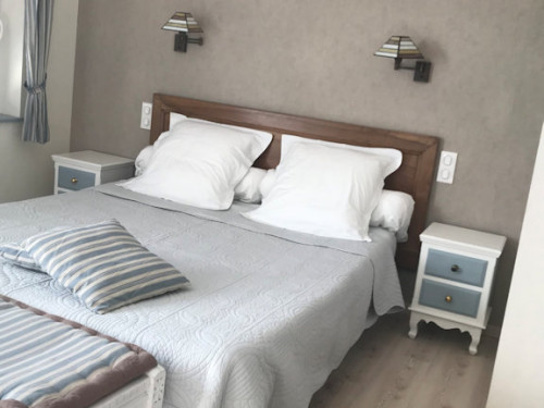Cette chambre est située au rez-de-chaussée. Le lit de 1.6 m de large et de 2 m de long, il est doté de 2 matelas séparés et confortable. Chambre climatisée