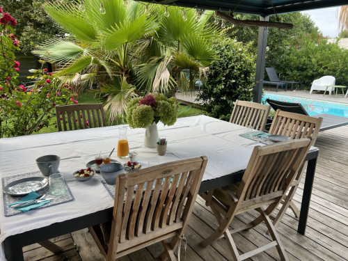 Pour ce séjour agréable à l'Air du Temps. Idéal pour visiter le Bassin d'Arcachon dans un endroit calme et reposant disposant d'une piscine chauffée pour se relaxer en fin de journée. A bientôt, Thierry et Barbara