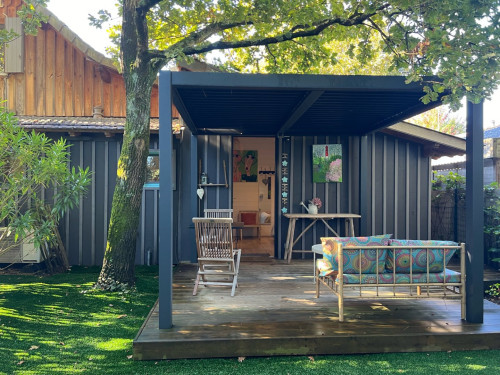 Valérie vous accueille à la villa L'air du Temps, maison atypique posée dans un écrin de verdure. Le jardin offre différents petits espaces pour se détendre suivant l’heure de la journée.