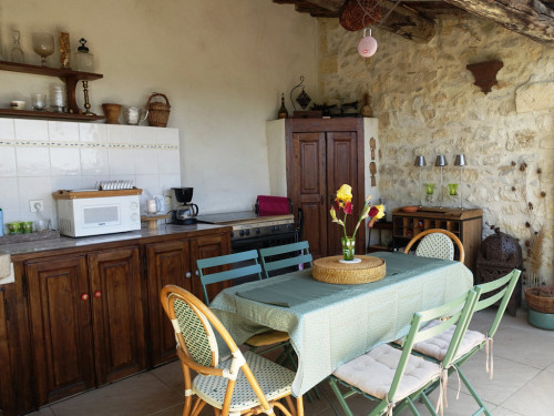 "LA BUISSONNIÈRE", maison d'hôtes provençale en pierre, nichée au cœur du village historique de Théziers.