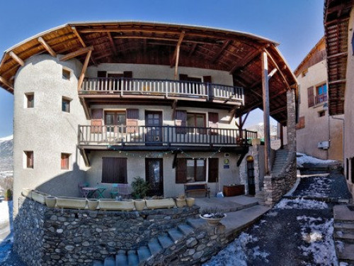 À trois minutes en voiture de Guillestre, une maison de caractère à étages au cœur du village de Risoul, à côté de l'église du village, avec 5 chambres de 2 à 4 personnes, équipées chacune de sanitaire privatif.