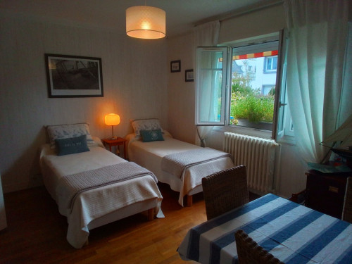 La maison est composée d'une chambre familiale : 2 chambres de 2 personnes communicantes, louables à 1 famille ou 2 couples. Le tout très confortable pour vous accueillir au rez-de-chaussée avec accès au jardin fleuri. Petit-déjeuner copieux et gourmand agrémenté de confitures maison.