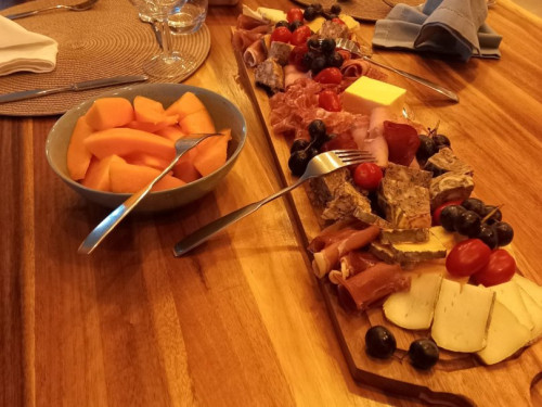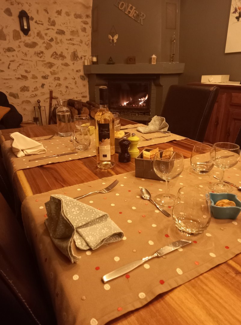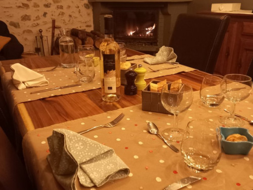 Nous proposons aussi une table d'hôte (excepté le jeudi soir) pour 29 € / personne comprenant un apéritif, une entrée, un plat, un dessert, un verre de vin de la région et pour finir un café ou une infusion. Tout est fait maison avec le maximum de produits locaux. A réserver au minimum 72 heures avant votre arrivée.