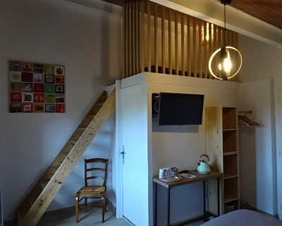 Une Mezzanine avec un lit d'une place pourra accueillir une troisième personne avec supplément de 15 € / nuitée