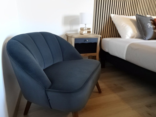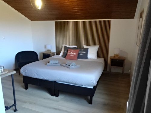 Un décor raffiné : La décoration élégante et moderne de la chambre Serre Soleille marie avec goût des matériaux naturel. Le lit king-size vous invite à un sommeil paisible dans un environnement calme et sans aucune pollution lumineuse.