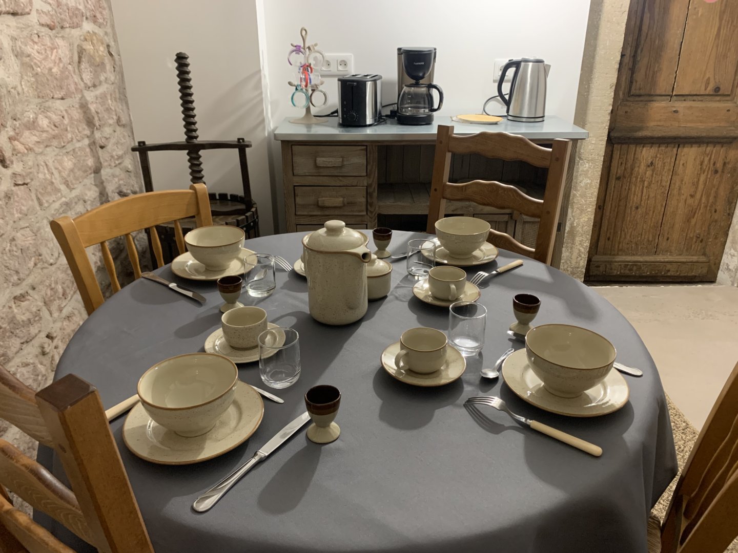Le petit déjeuner peut être servi dans la chambre ou dans la pièce commune, au choix, selon les préférences de chacun.