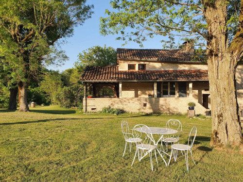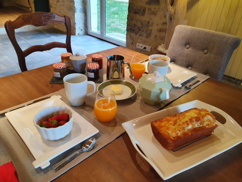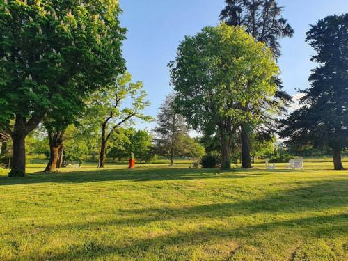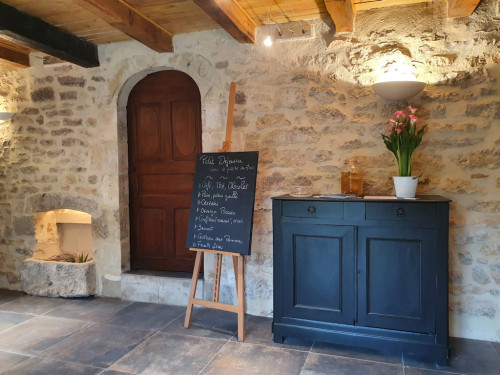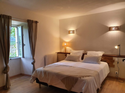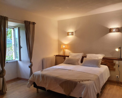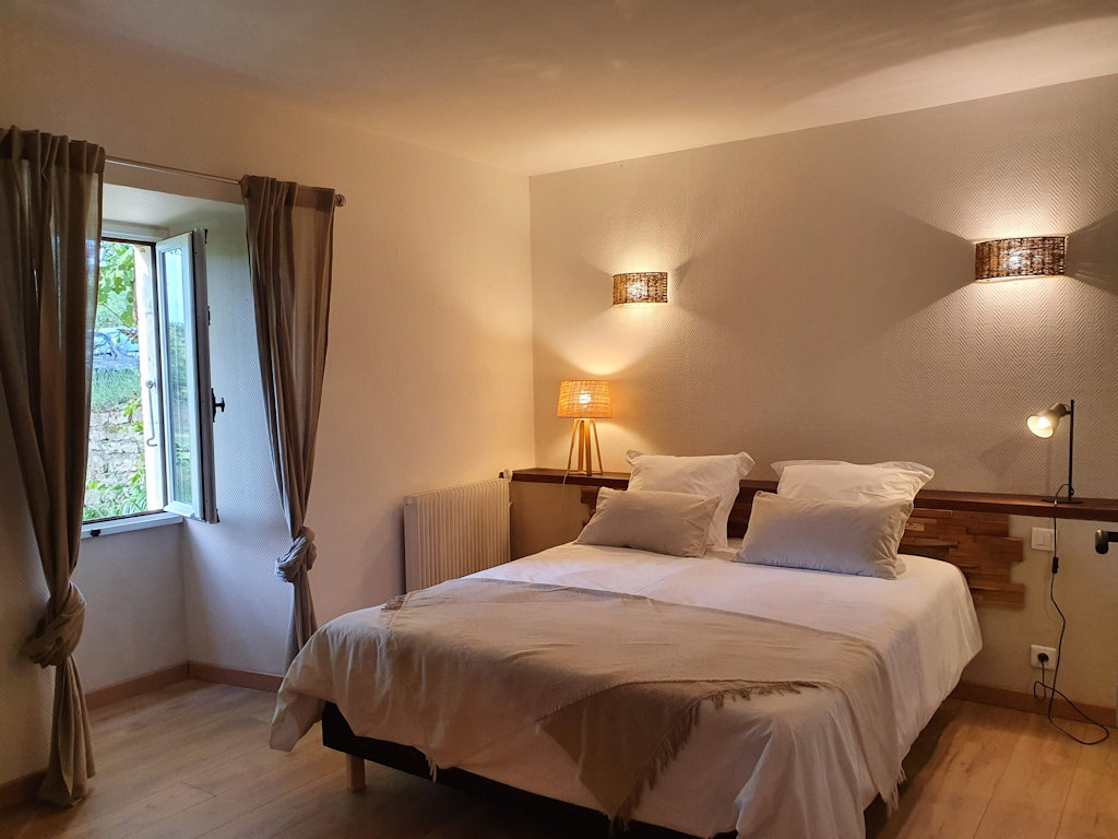 La fenêtre s’ouvre sur le jardin, la terrasse et son puits.