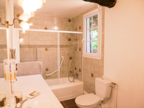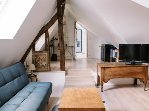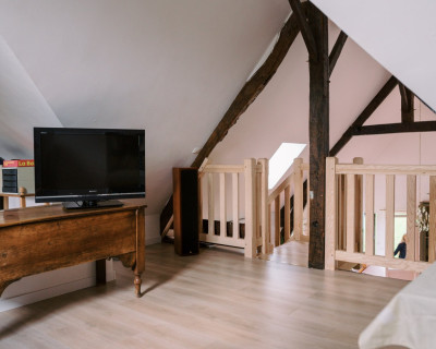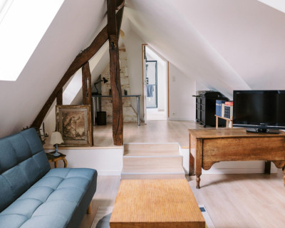 Accès privatif au petit salon contigu à votre chambre doté d'un très beau mobilier d'époque, à disposition une chaine Hi-Fi, musique de qualité, bibliothèque et coin cheminée.