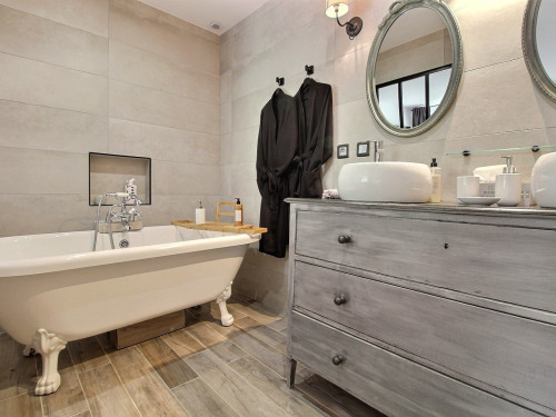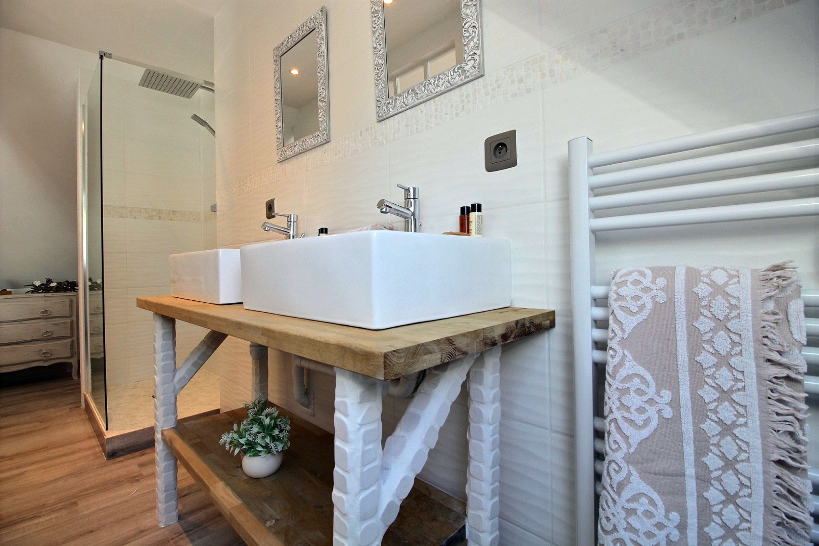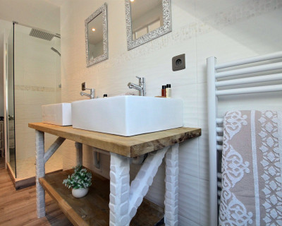 Vous trouverez tout le confort que vous souhaitez : télévisons LCD, WiFi, un grand dressing, mini-frigo, coffre-fort, plateau de courtoisie, cafetière Nespresso, bouilloire, douche et baignoire, WC indépendant, literie haut de gamme 180x200 cm de marque française, linge de maison et serviettes pour la piscine, volets roulants électriques, accès piscine chauffée de mai à septembre en fonction de la météo.