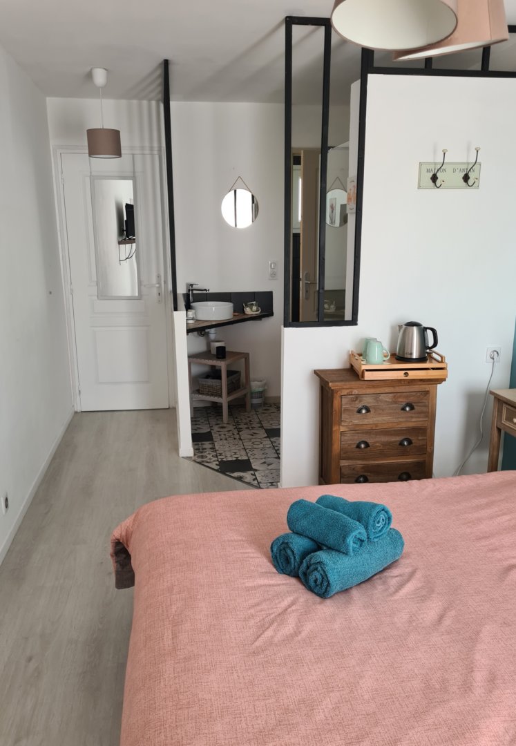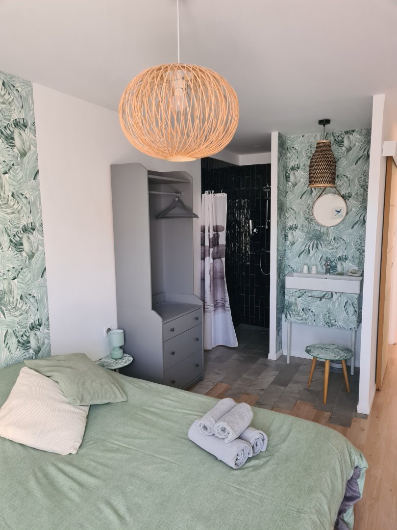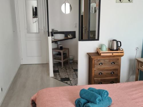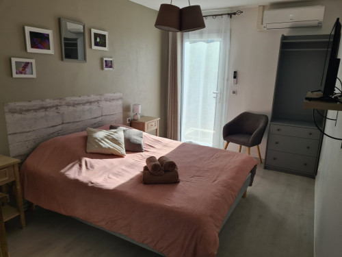 Elle dispose d'un lit double, d'une salle de bain avec WC privé.
