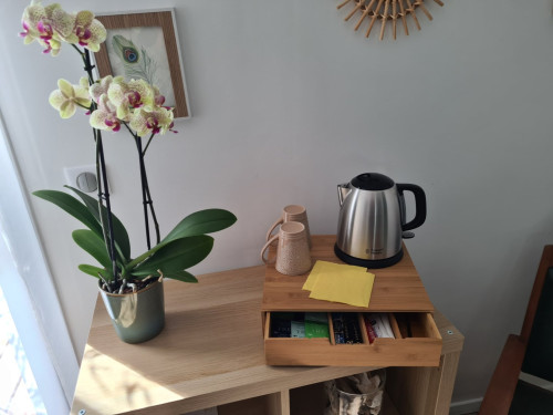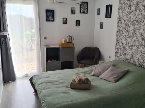 En ouvrant la fenêtre, vous aurez une petite terrasse face à la piscine et à la nature. Nous vous fournissons les draps, les serviettes de bain, le gel douche, shampooing et savon. Un sèche-cheveux est à votre disposition. Ainsi qu'un plateau de courtoisie avec du café et thé.