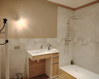 Un espace de douche important combine des dimensions généreuses, un aménagement optimisé, des matériaux de qualité, et des équipements qui augmentent le confort tout en mettant l’accent sur un design épuré et fonctionnel.