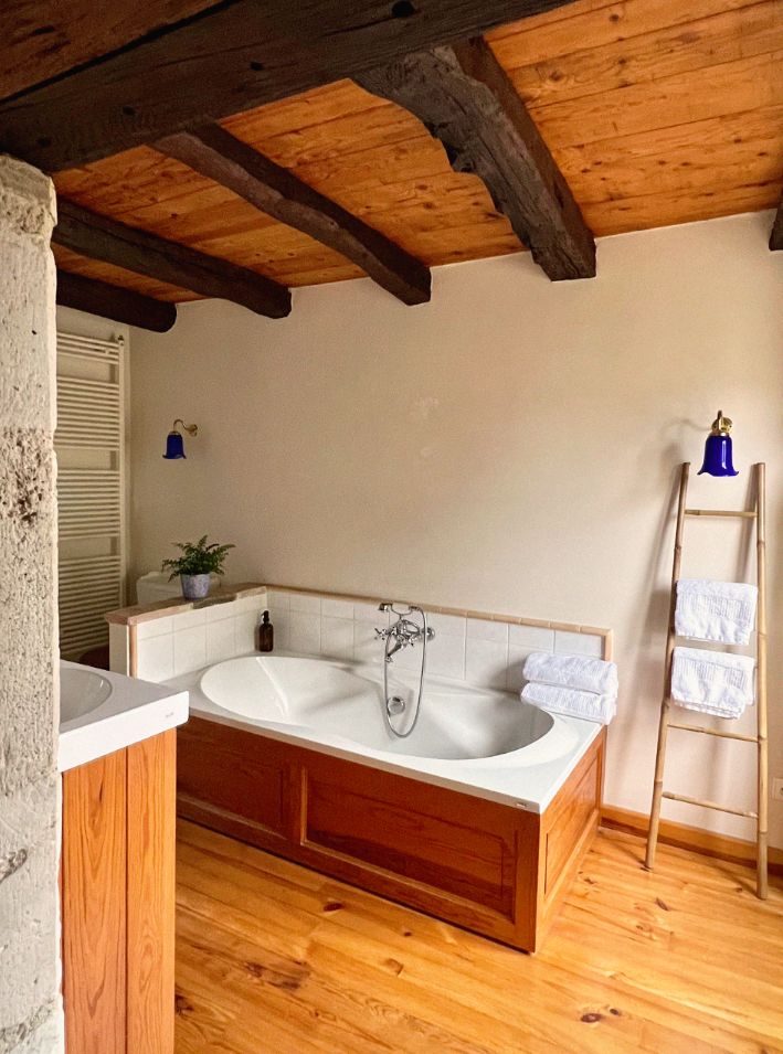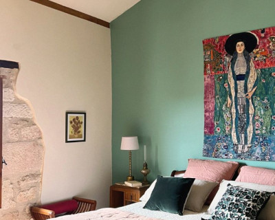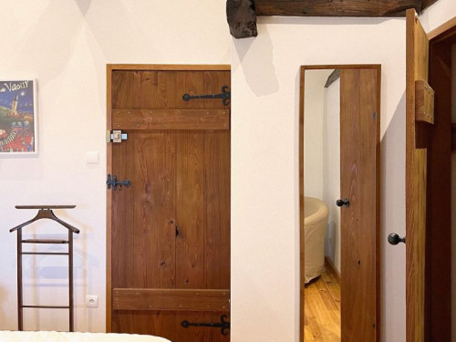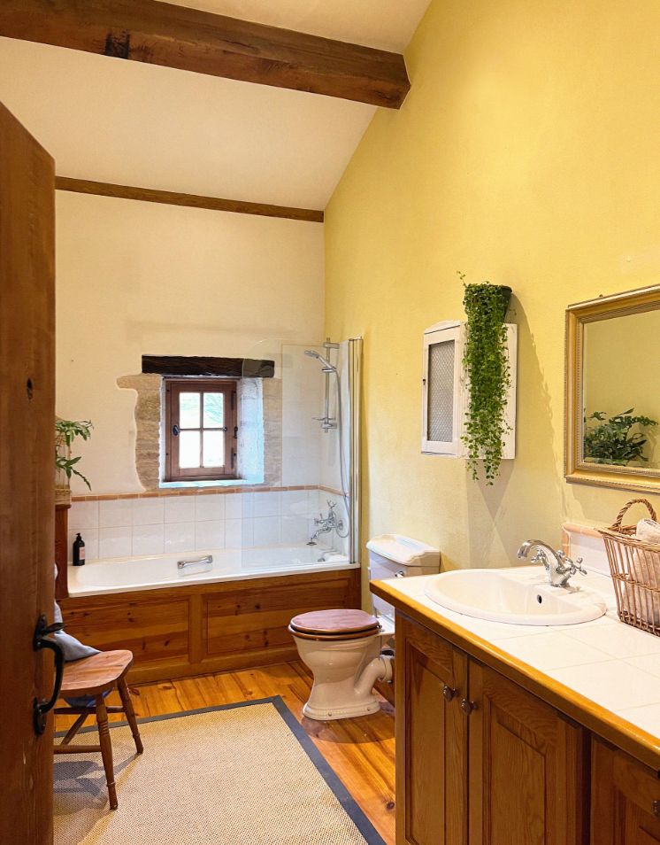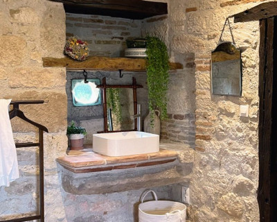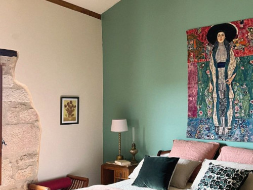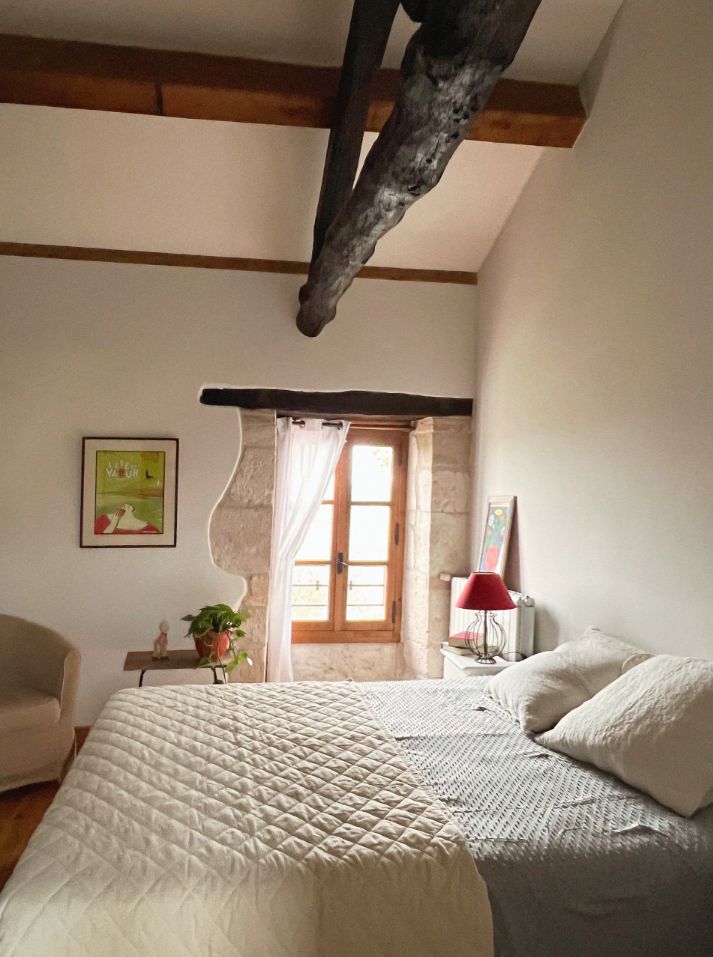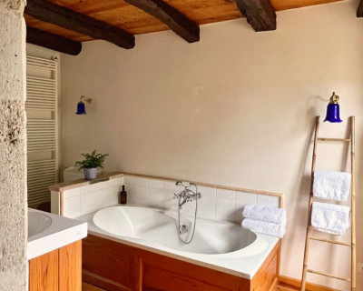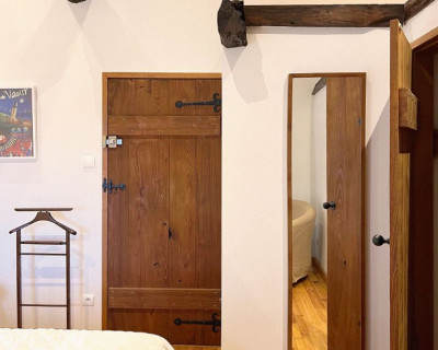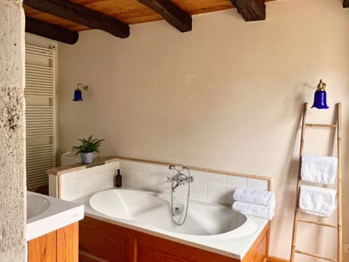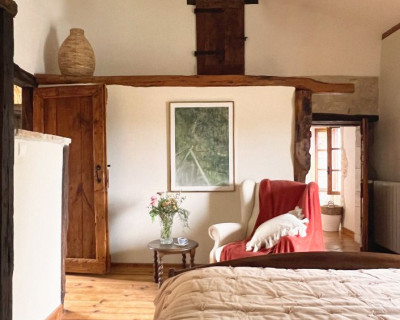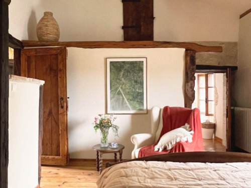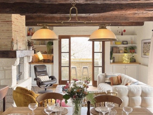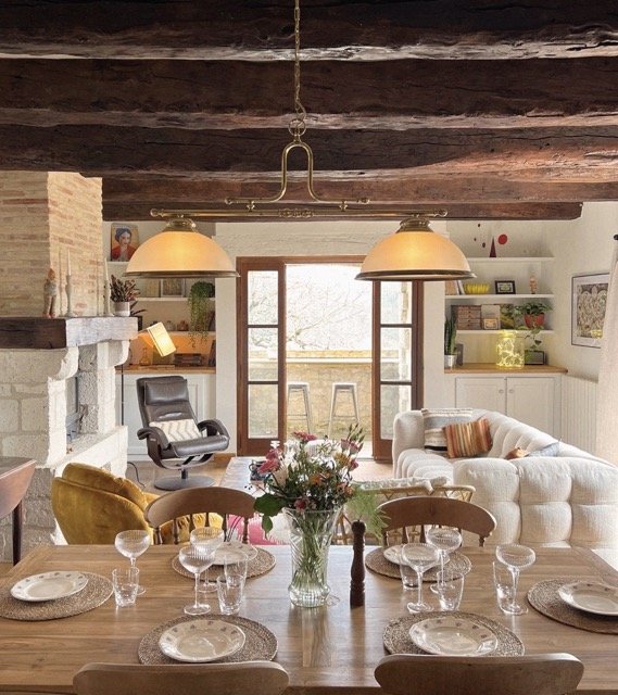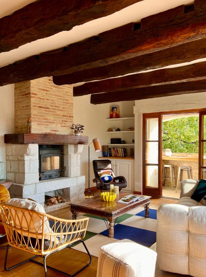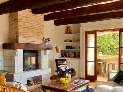 Située au rez-de-chaussée de la maison, dans un bel espace de 30 m², elle dispose d'une grande cheminée d'origine avec un poêle qui peut être utilisé l'hiver.