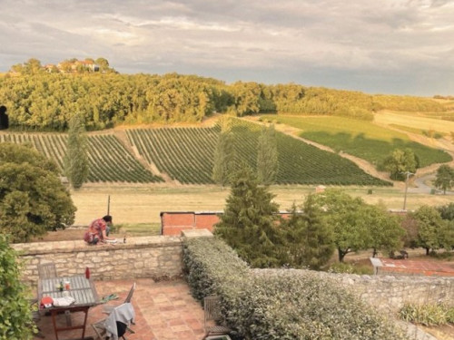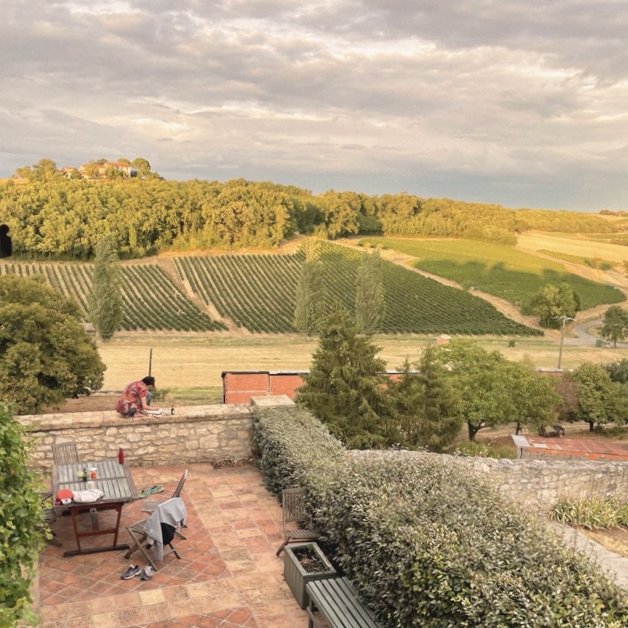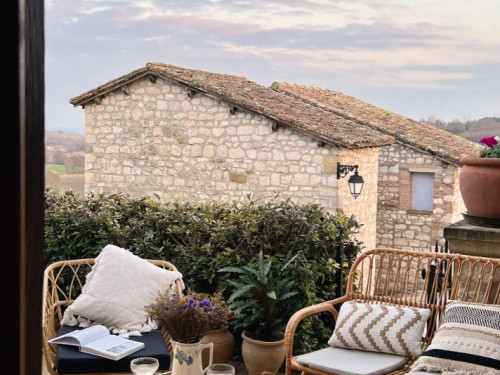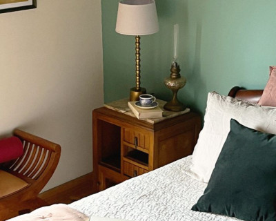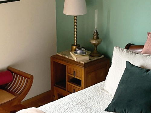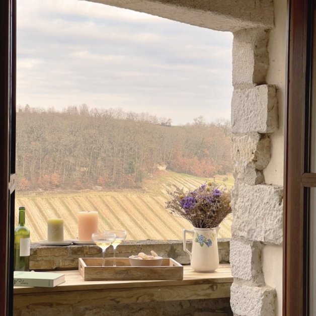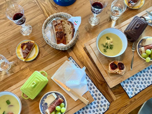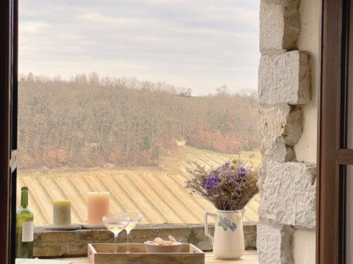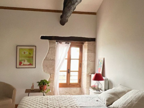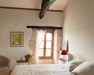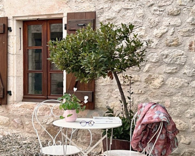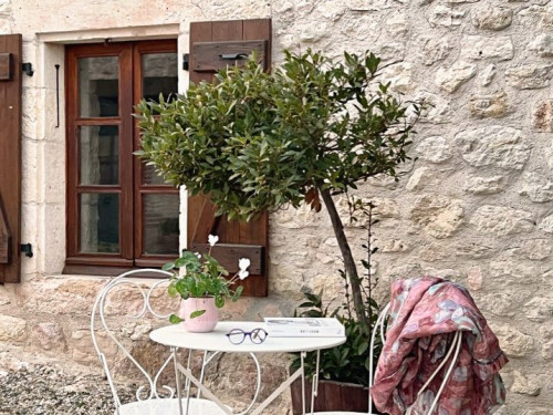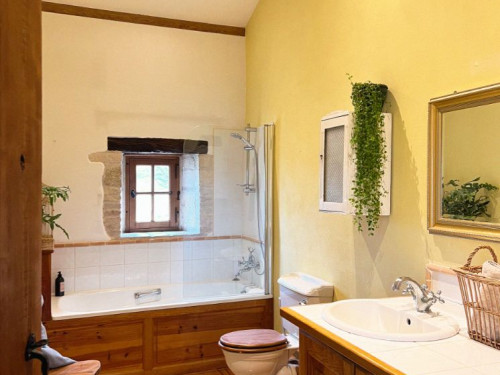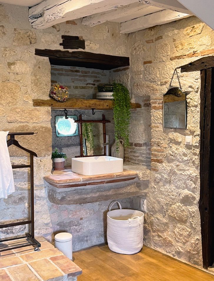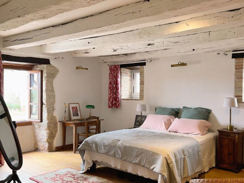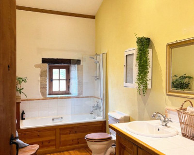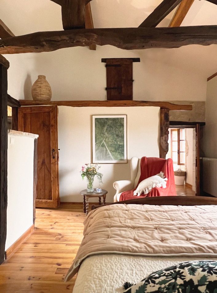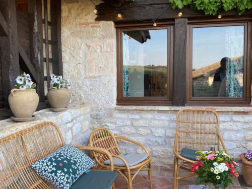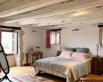 Située au rez-de-chaussée de la maison, dans un bel espace de 30 m², elle dispose d'une grande cheminée d'origine avec un poêle qui peut être utilisé l'hiver.