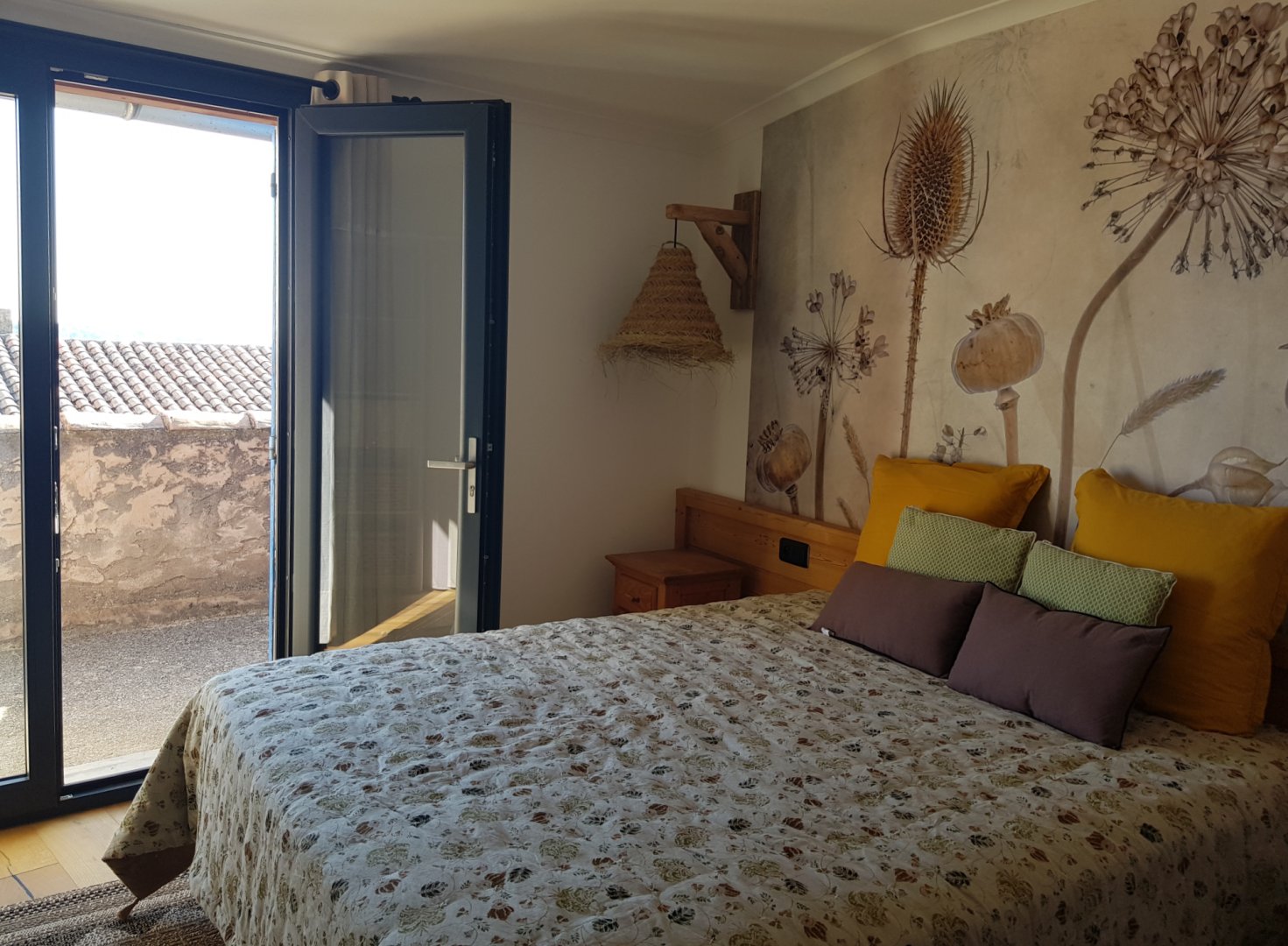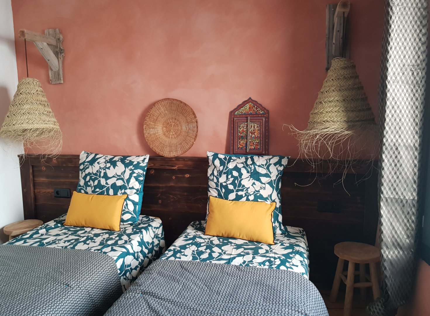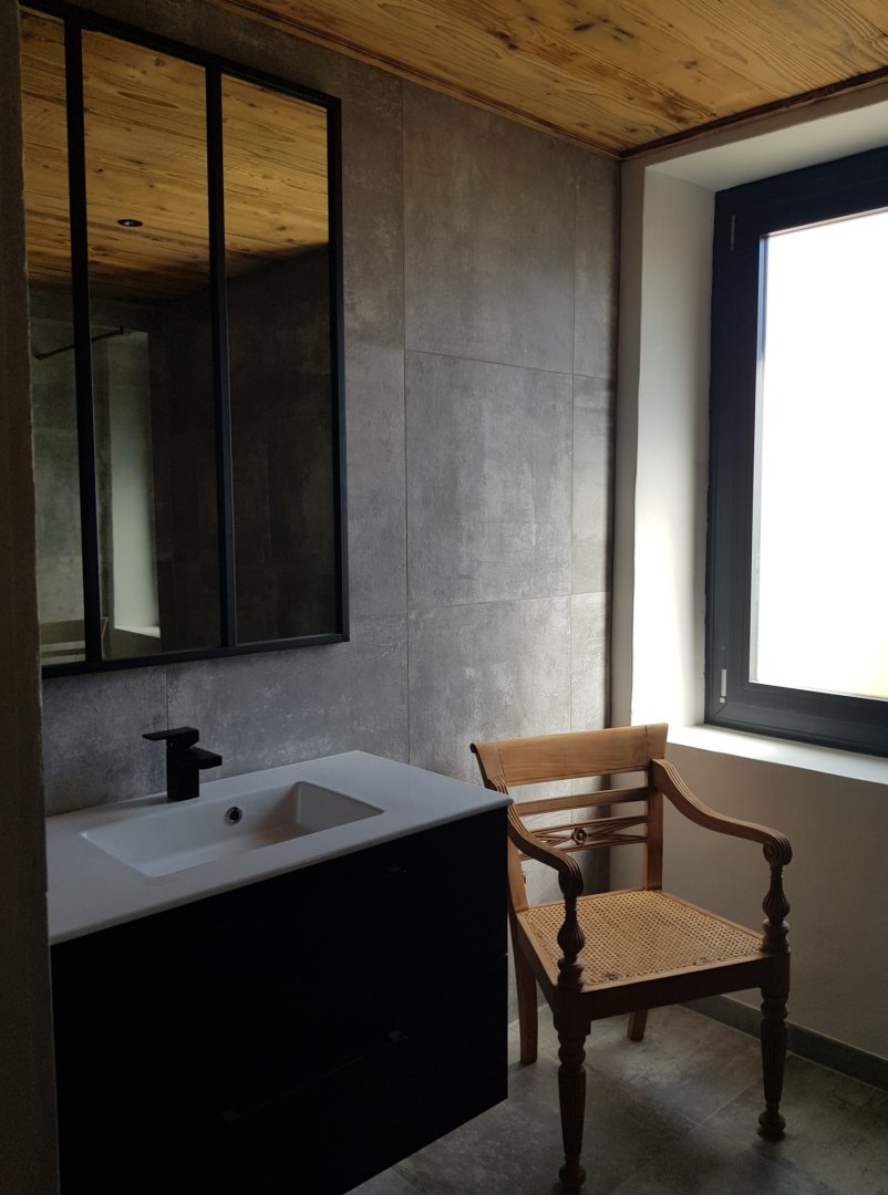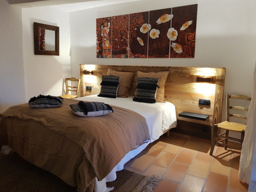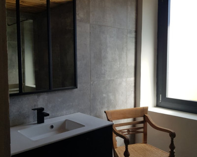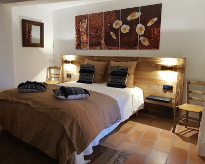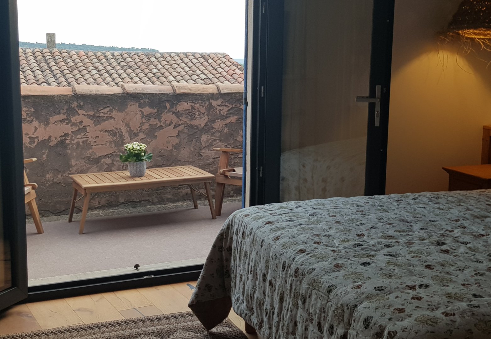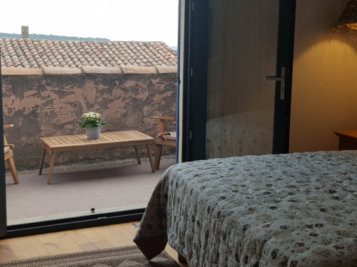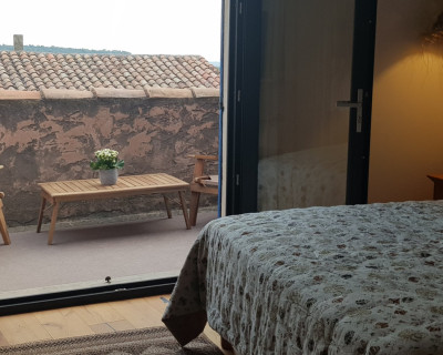 Le tout équipé d'une grande télévision, WiFi, plateau de courtoisie, penderie et rangement donnant sur une terrasse avec vue sur cour arborée suivie d'une salle de douche et d'un wc privatif.