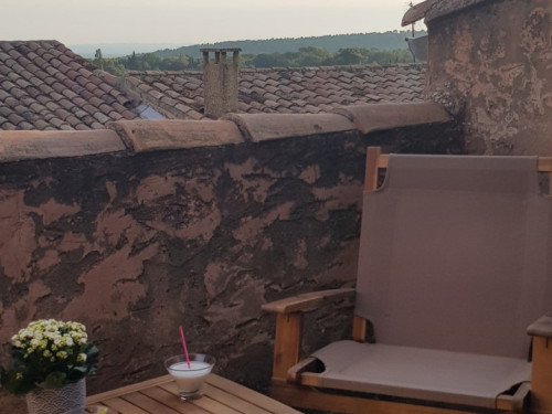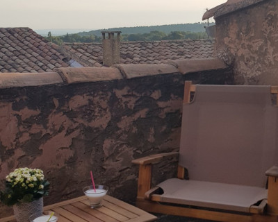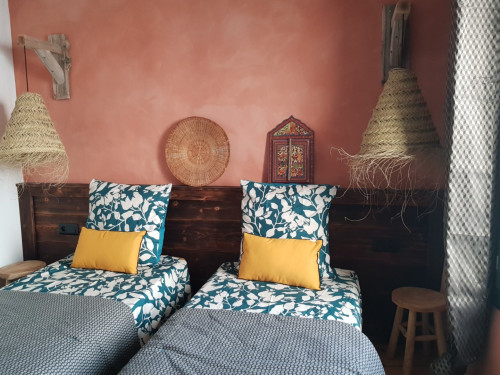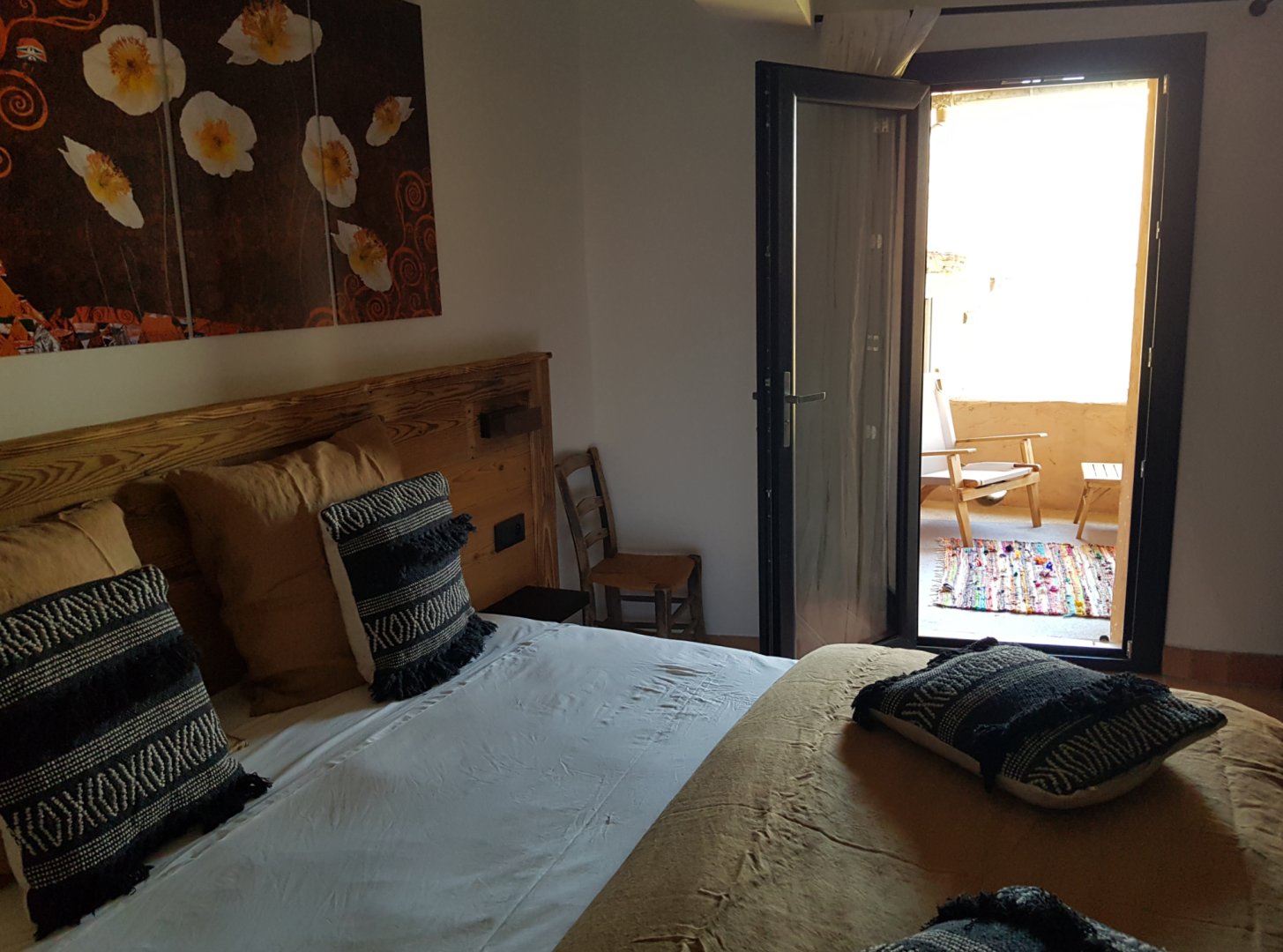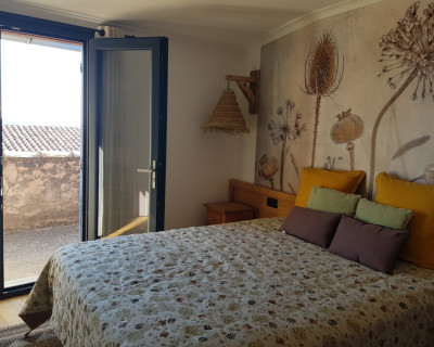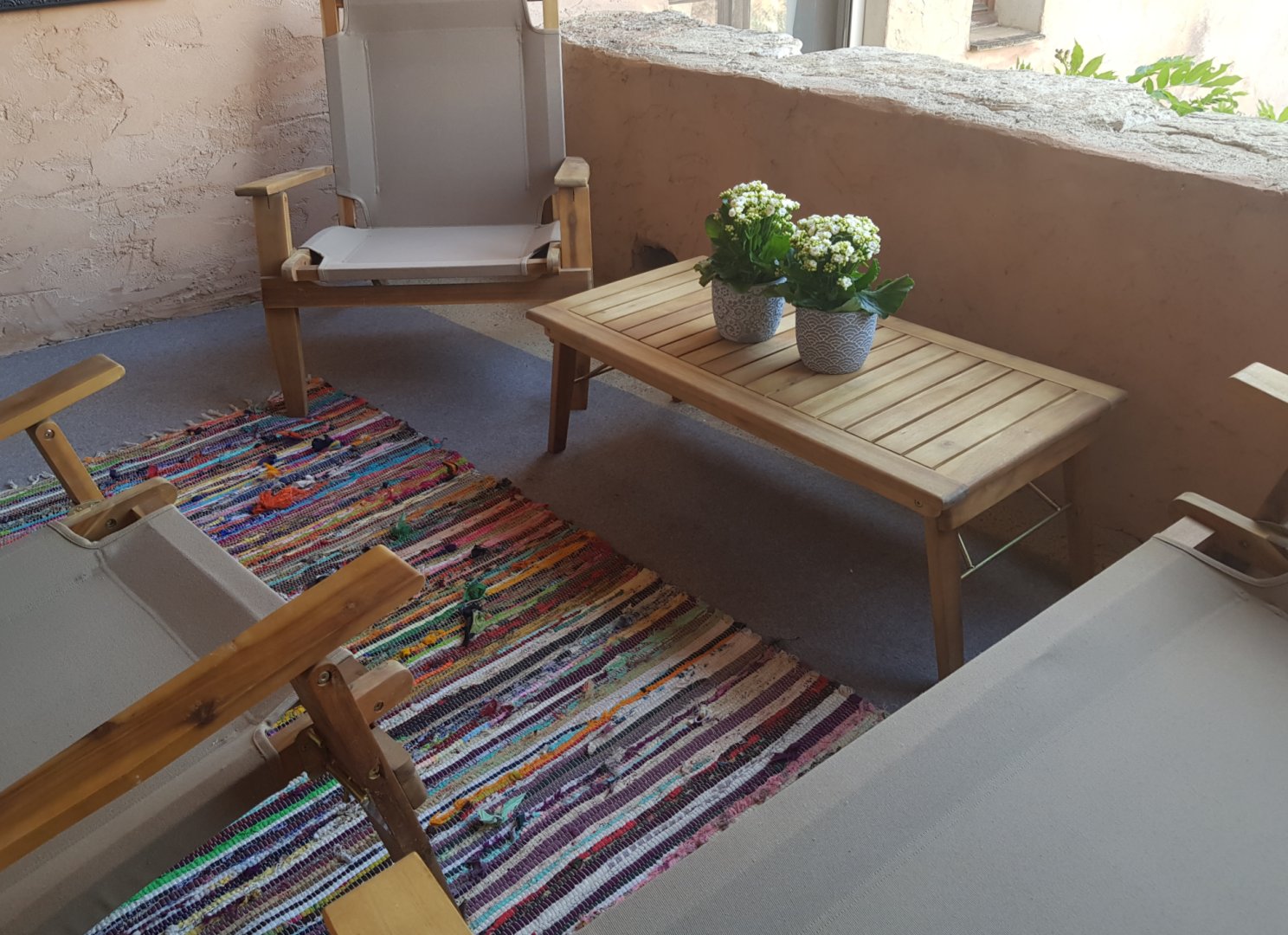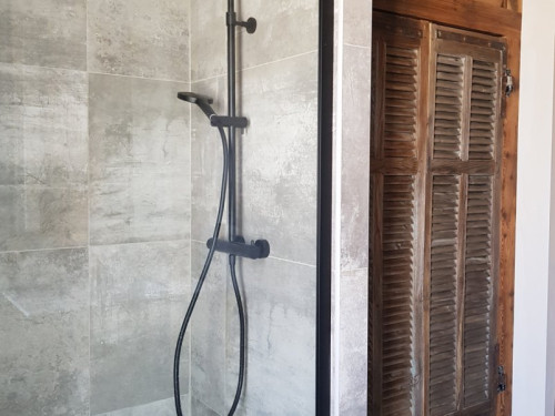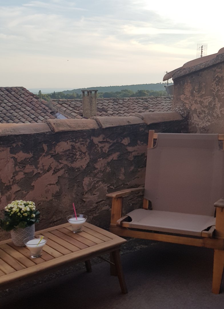 Le tout équipé d'une grande télévision, WiFi, plateau de courtoisie, penderie et rangement donnant sur une terrasse avec vue sur cour arborée suivie d'une salle de douche et d'un wc privatif.