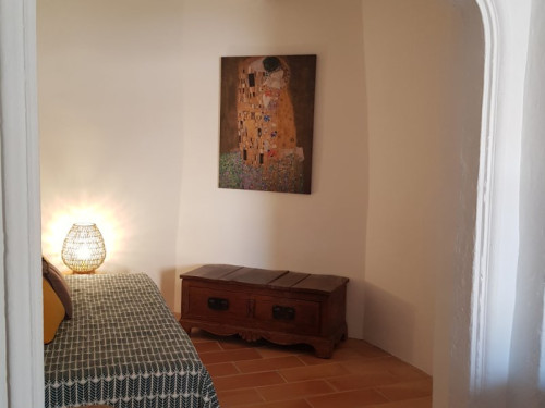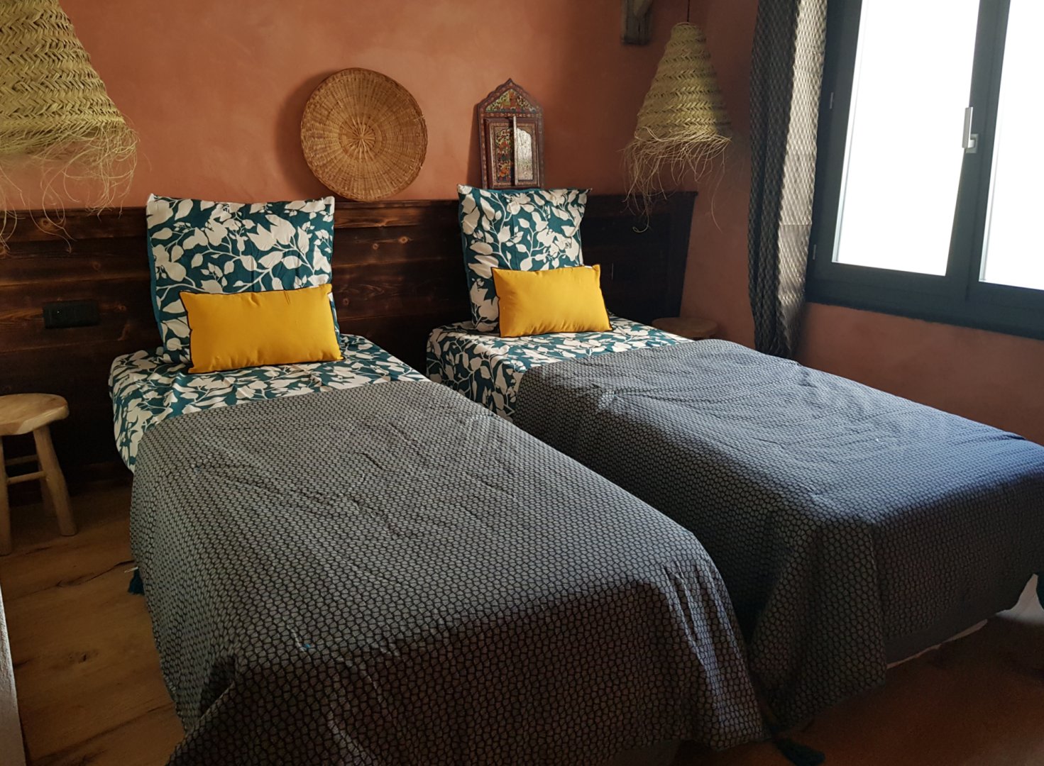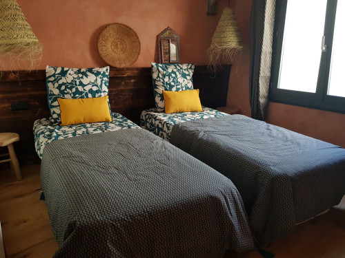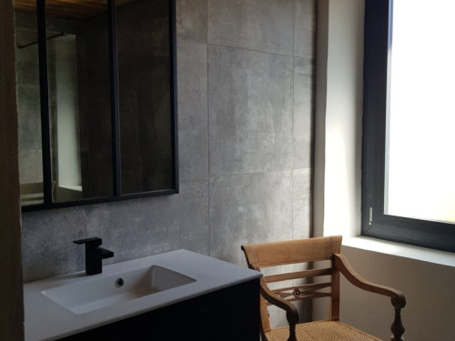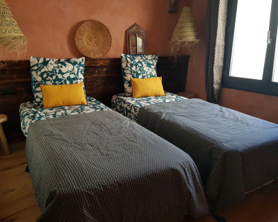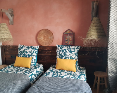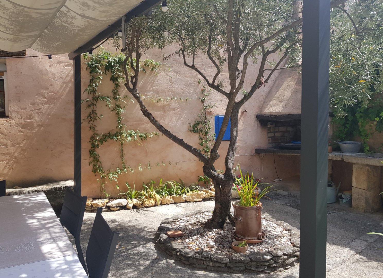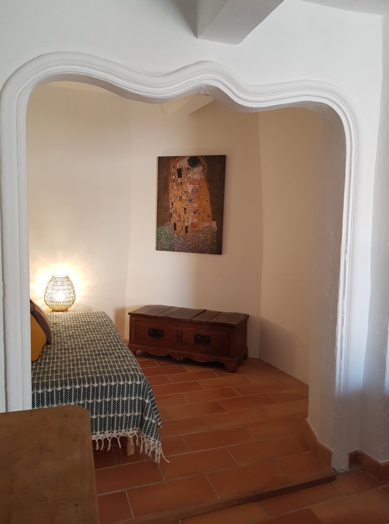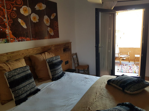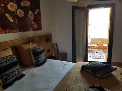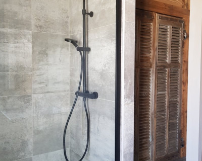 Le tout équipé d'une grande télévision, WiFi, plateau de courtoisie, penderie et rangement donnant sur une terrasse avec vue sur cour arborée suivie d'une salle de douche et d'un wc privatif.
