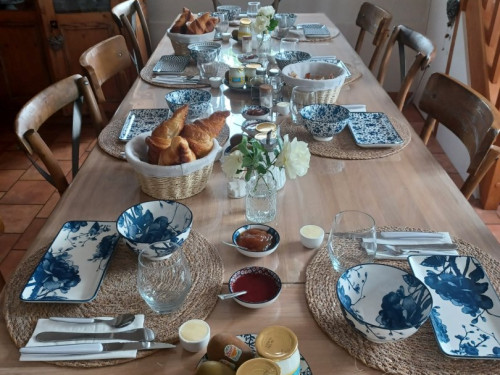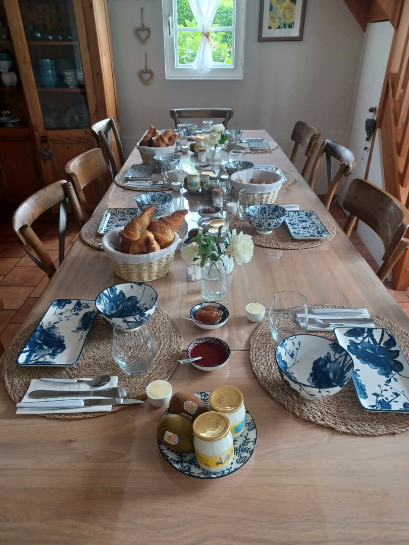 Un concentré de Normandie (fromage, confiture maison,jus de pomme local) au petit déjeuner servis par Nathalie et Gilles attentifs et accueillants.