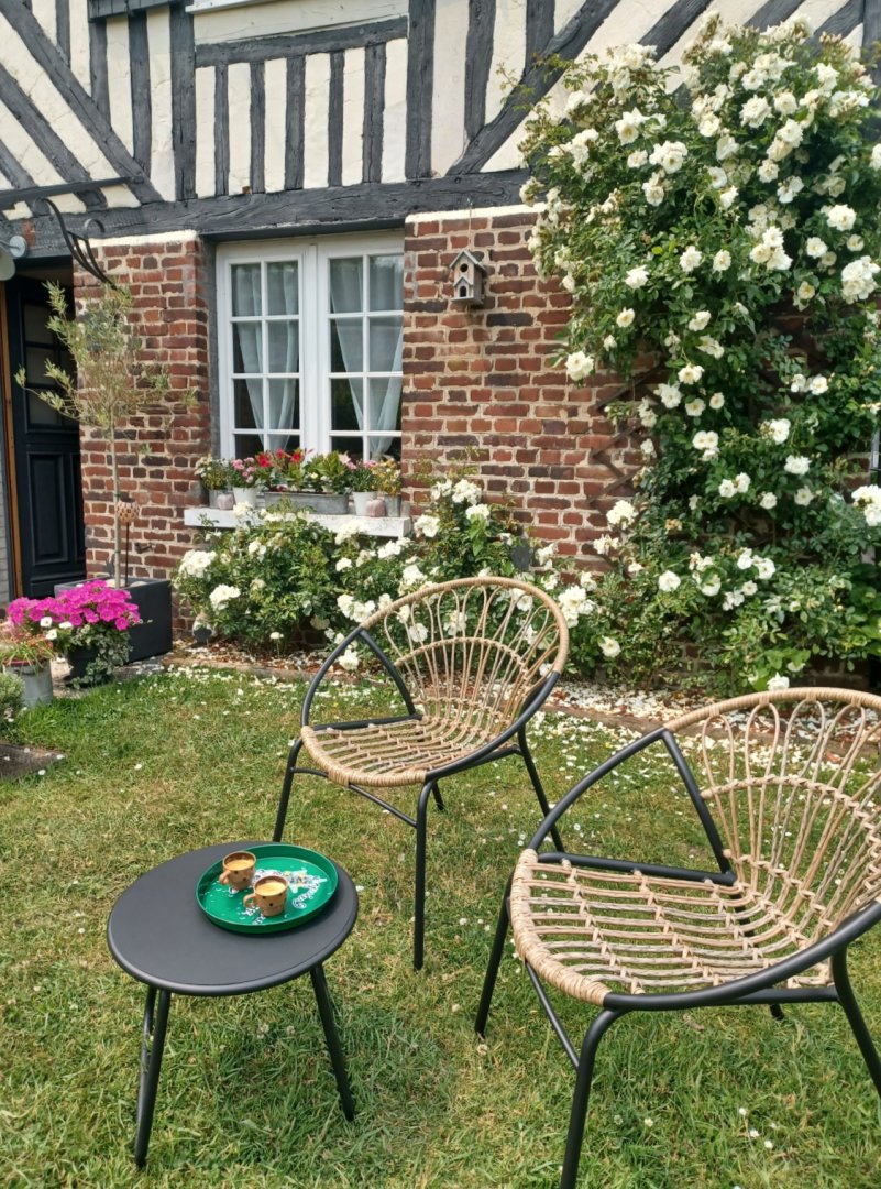 Maison normande composée de 5 chambres dont une chambre familiale, toutes décorées avec soin, équipées d’un téléviseur écran plat, connexion WIFI gratuite, bouilloire et infusions.