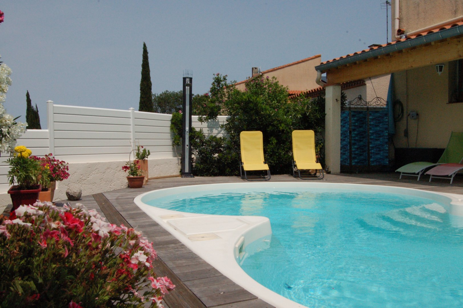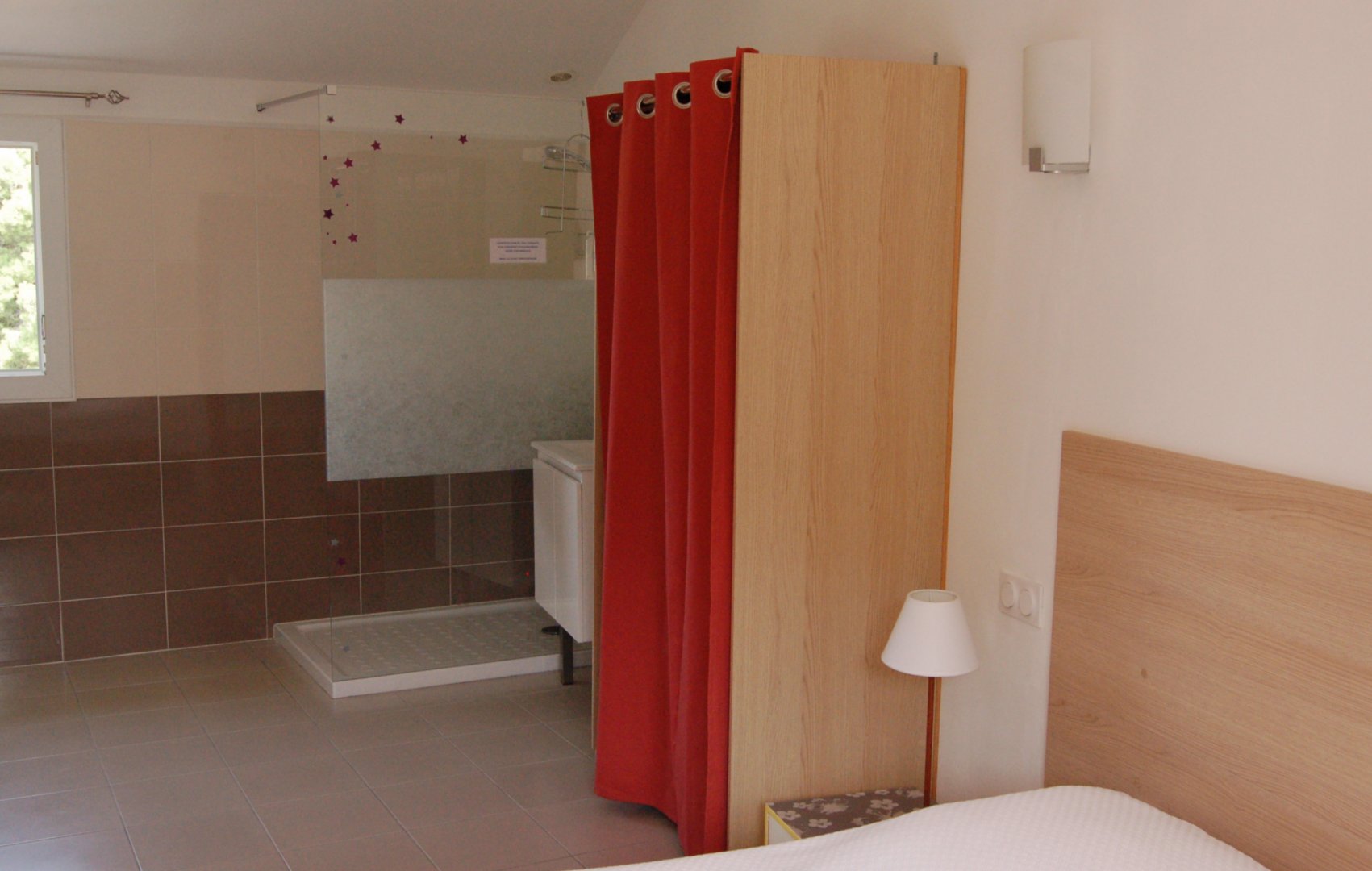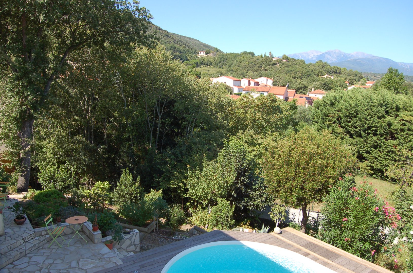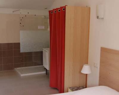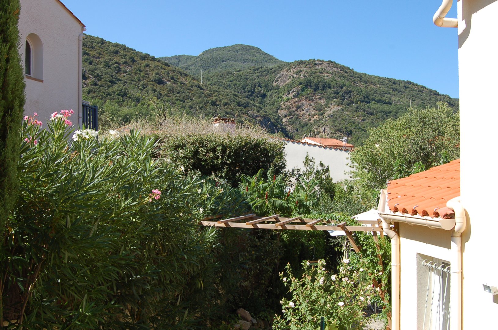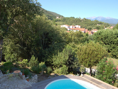 Dans un site très calme, une chambre bien équipée, confortable et lumineuse. Une fenêtre offre une vue superbe sur la campagne, la vallée, le Canigou ; une autre s’ouvre sur la placette où vous pouvez stationner devant la maison. (Recharge possible d’un véhicule électrique).