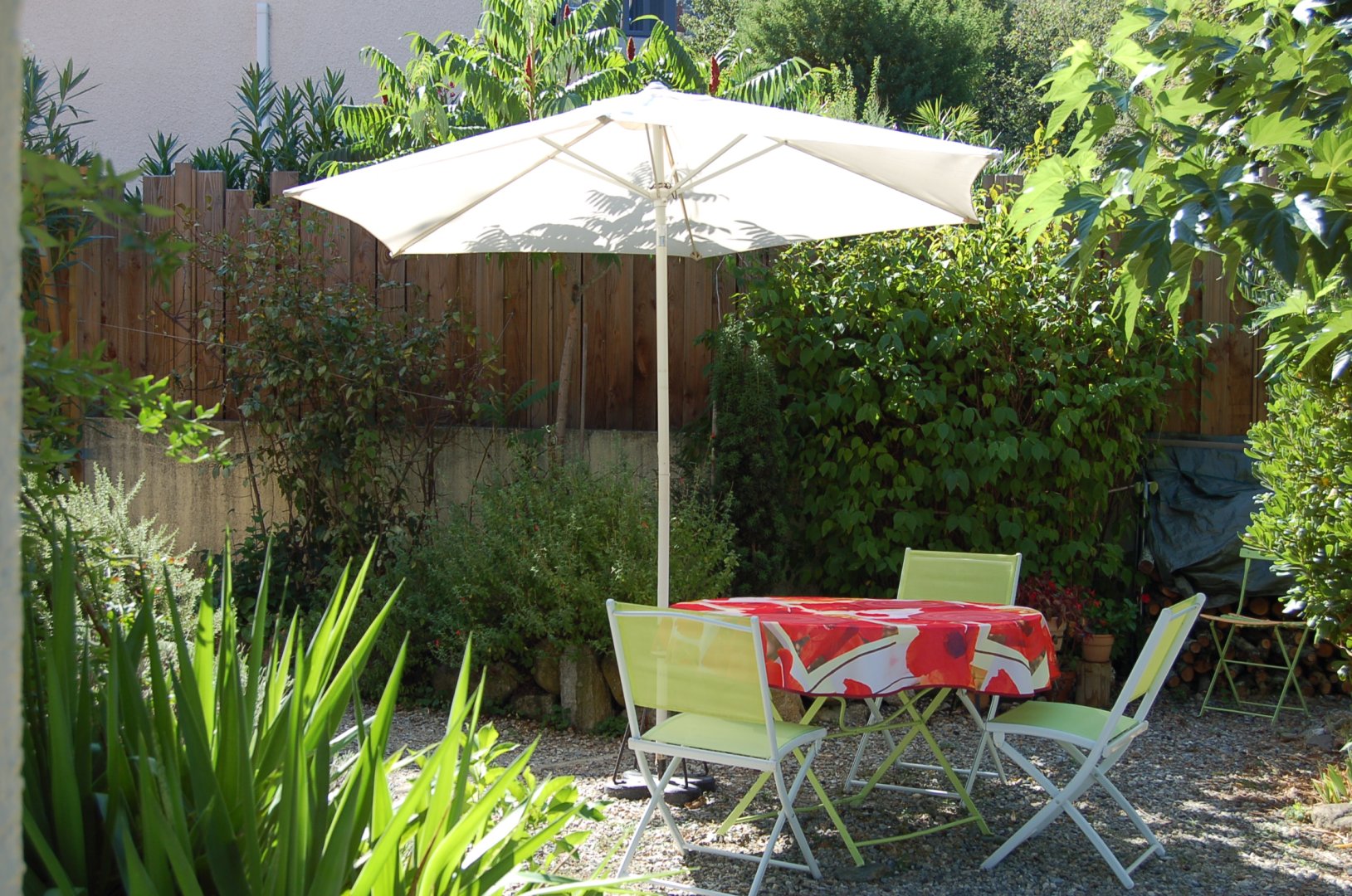 Selon la saison, vous prenez le petit déjeuner près de la cheminée ou dans l’espace ombragé du jardin qui vous est réservé.