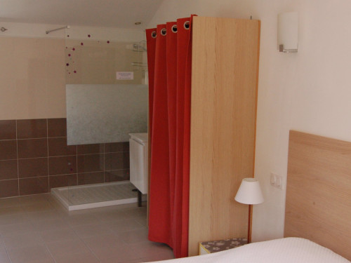 Cabine de douche à l’italienne, lavabo sur meuble, WC séparés, climatiseur réversible.