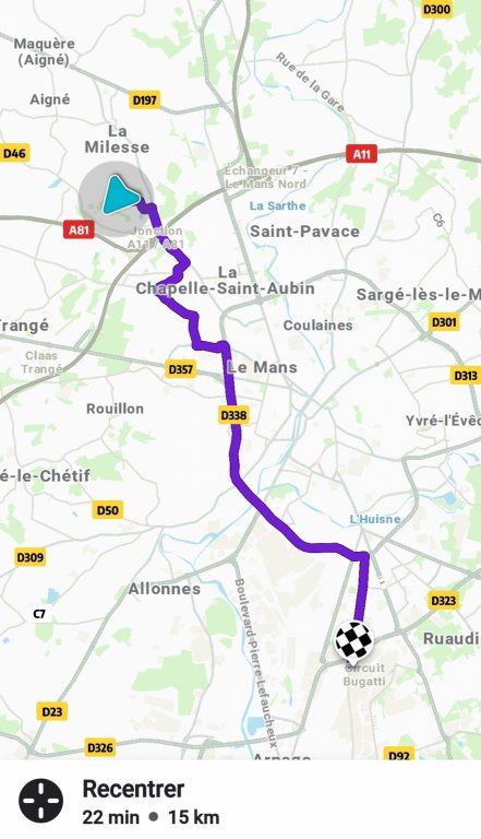 Vous êtes à 16 km du circuit des 24 h sans passer par Le Mans Centre. Vous pouvez aussi déposer votre véhicule a l'université (3kmsgratuit) et prendre le tramway qui vous emmène directement aux portes du circuit en 30 mn