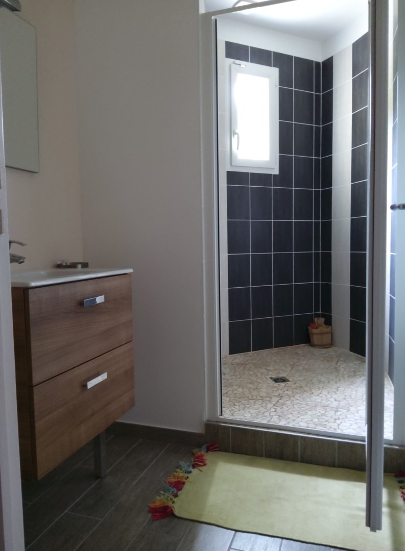 La salle de bain et les WC sont sur cet espace (100 m²), cet étage est pour soit une même famille ou groupe.