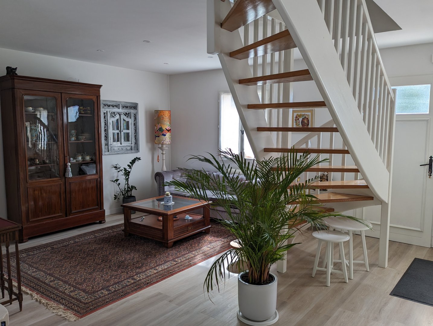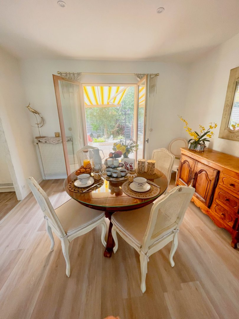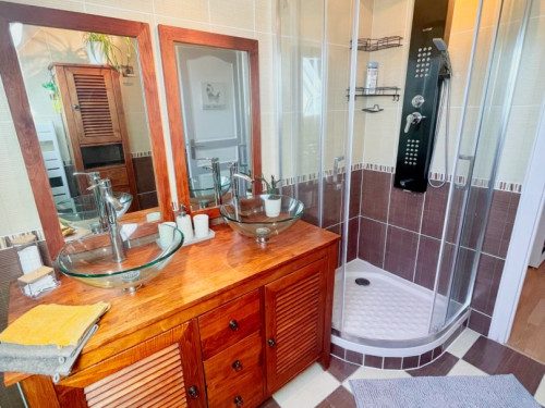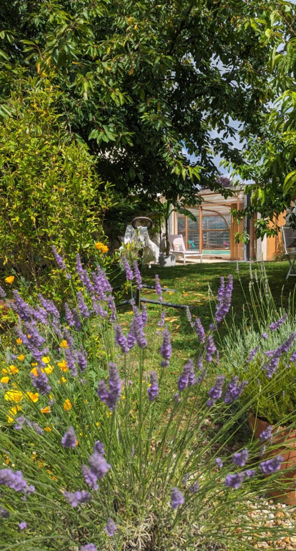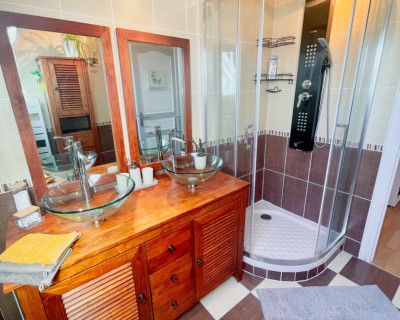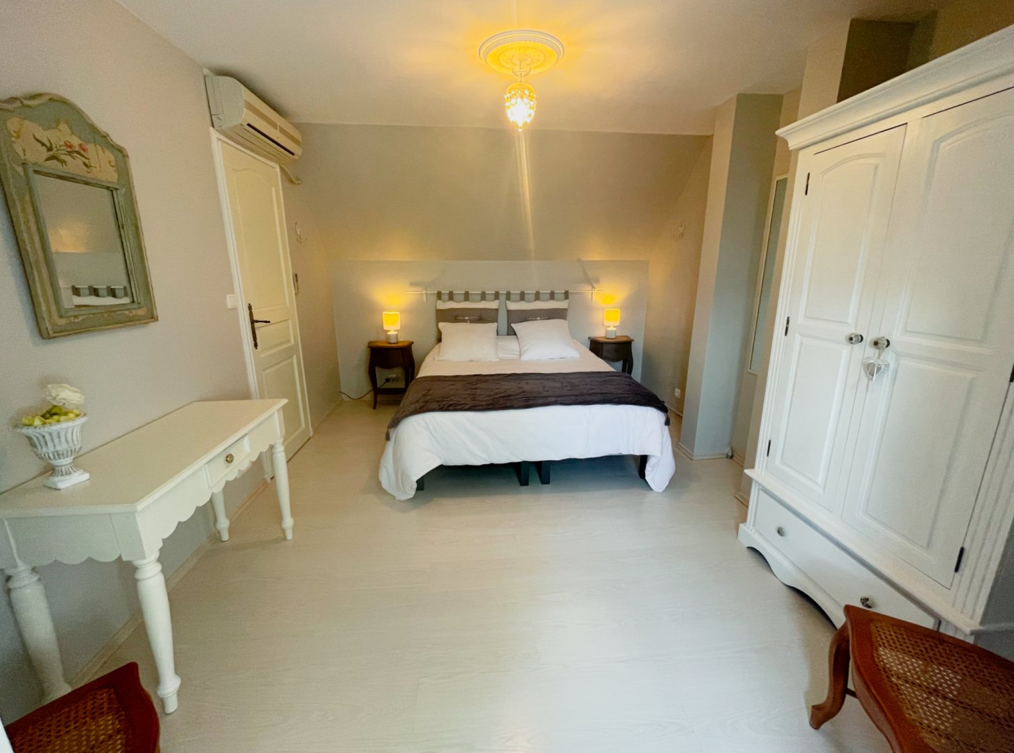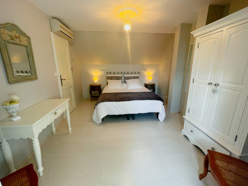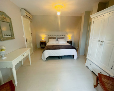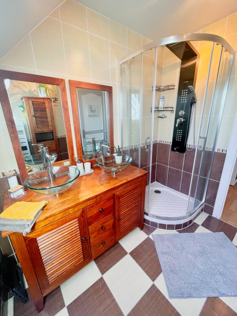 Étage de la maison totalement privatisé composé de 2 chambres, d'un salon avec télévision, frigo micro-ondes, une salle d'eau double vasques, douche à hydrolats WC séparés.