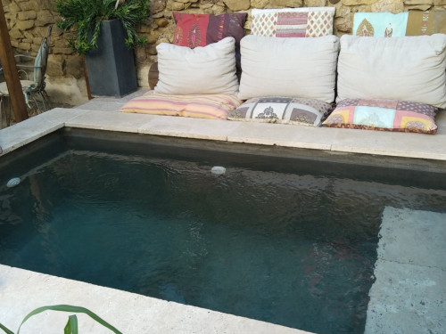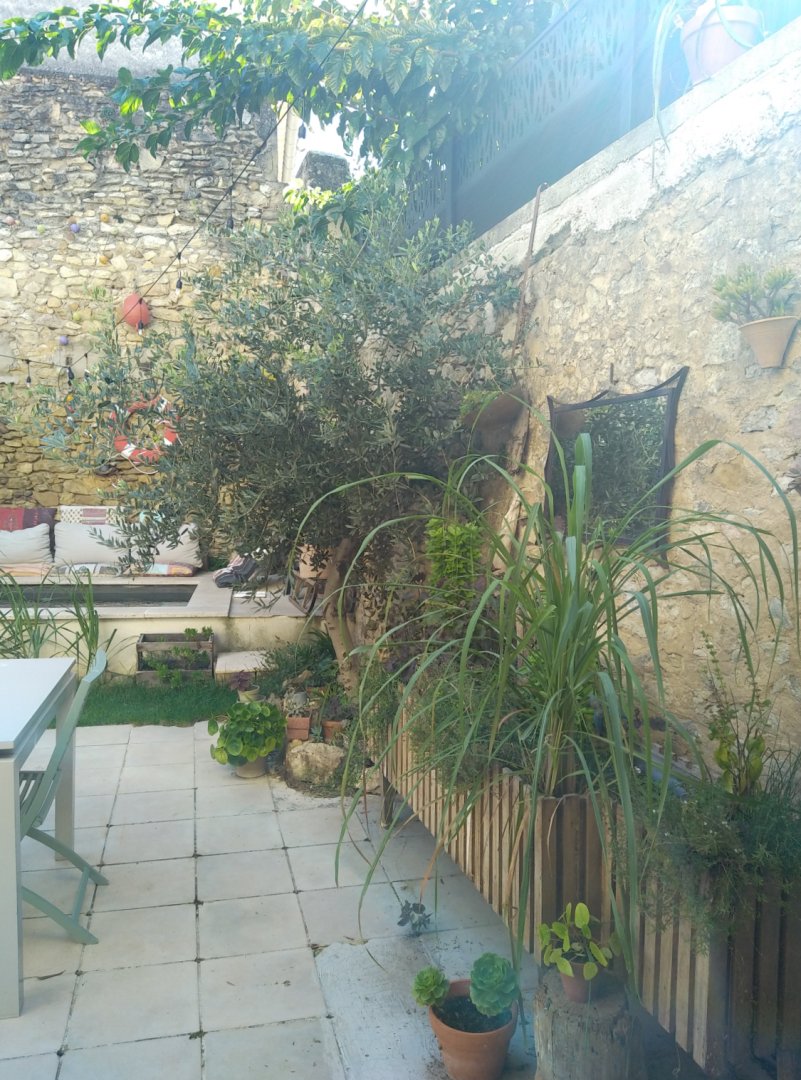 Bien situé en plein centre de Caderousse, Fred et Alex nous ont fait un accueil royal. La chambre est spacieuse et joliment aménagée, avec une salle de bain au style retro, toute en petits meubles chinés. La cour intérieure avec son bassin et ses plantes grasses est un petit havre de paix en cette saison. J'ai adoré aussi votre echelle recyclée en étagère-bibliotheque dans le coridor. Et merci pour l'accueil, de A à Z (et tout particulièrement les rafraichissements à notre arrivée, vraiment bien venus après nos 78km de vélo... mais la fin de soirée était aussi très chouette ).