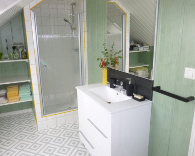 Un wc séparé pour les deux chambres, une salle de bain avec douche (linges de toilette fournis).