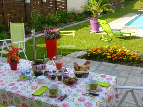 Nous sommes arrivés dans un magnifique petit cocon, chaleureux à l'image de Danièle et André. Notre chambre était décorée avec beaucoup de goût et très confortable. La météo a fait que nous n'avons pas pû prendre le petit déjeuner - copieux et délicieux, avec confitures maison et salade de fruits frais- sur la terrasse, mais à travers la baie vitrée,nous avons assisté au ballet d'hirondelles au-dessus de la piscine.