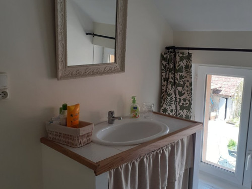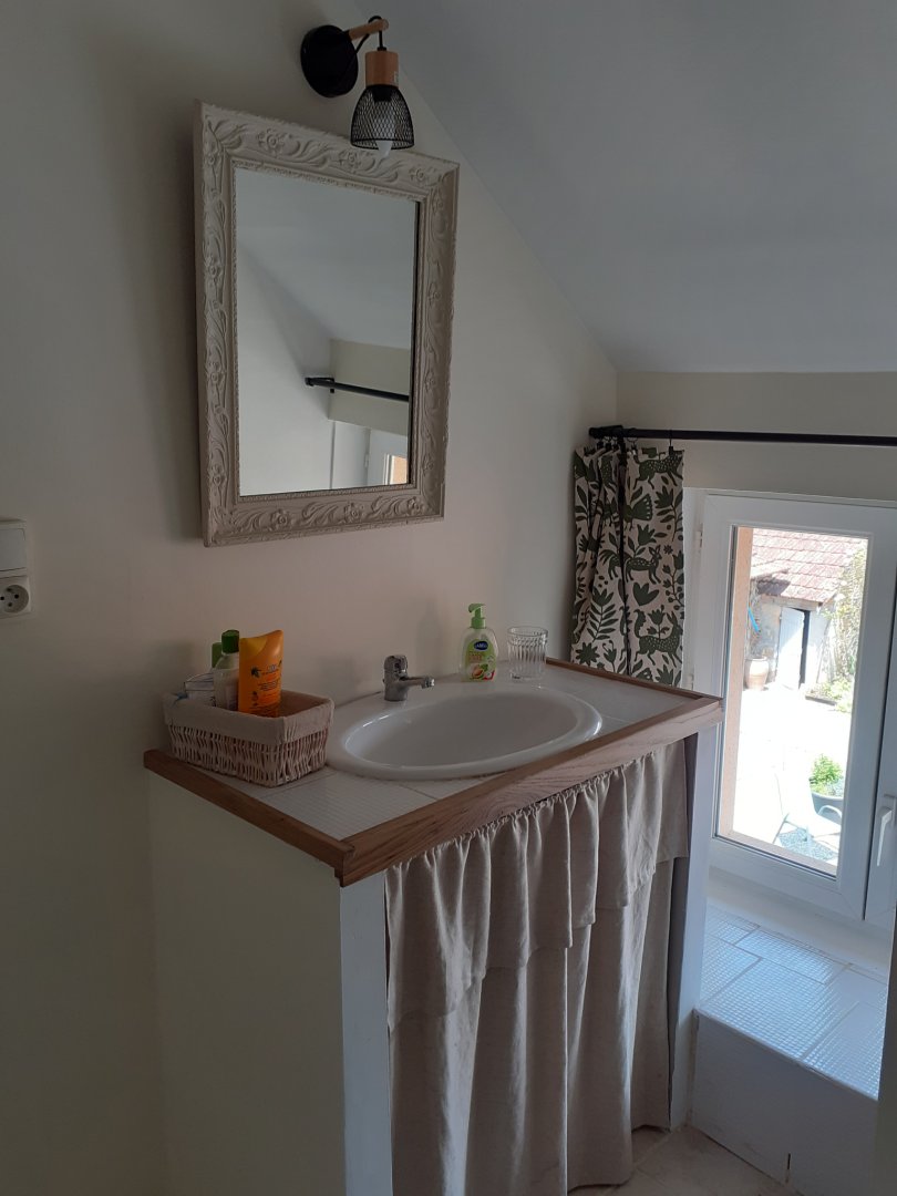 Grand rangement dans la salle de douche.