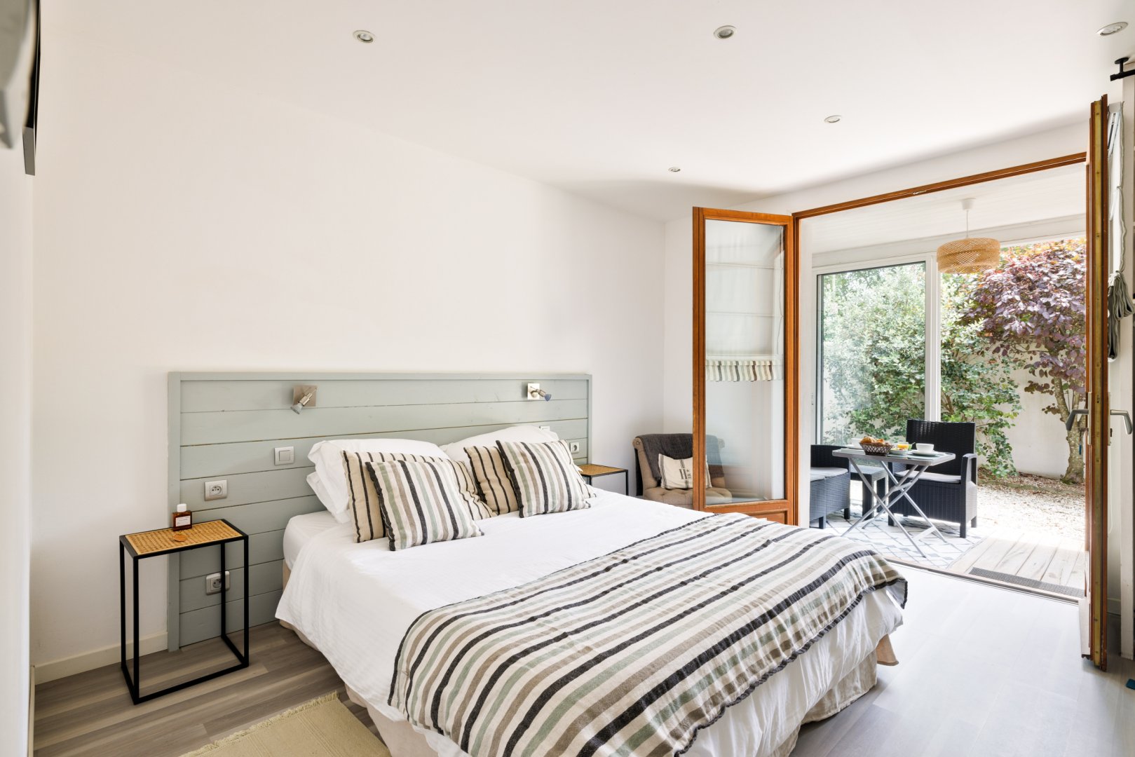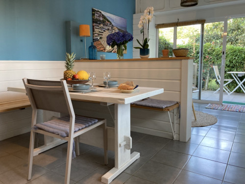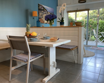 Nous avons passé 6 nuits dans la chambre Écume ; la chambre est joliment décoré, le lit très confortable ; le plus: sa situation un peu plus à l ecart et la véranda pour prendre le petit dej ou dîner; à ce propos il y a un joli kiosque tout aménagé au milieu du jardin avec tout à disposition et idéal si on ne veut pas aller au resto par exemple ; le jardin est magnifique et on se sent immédiatement bien et détendu ; nos hôtes ont été adorables avec de petites attentions qui nous ont touchés ; un vrai plaisir d échanger avec eux et leur famille ; adresse hautement recommandable!
