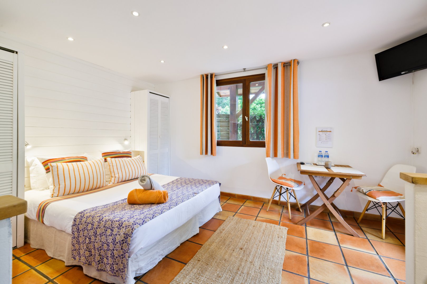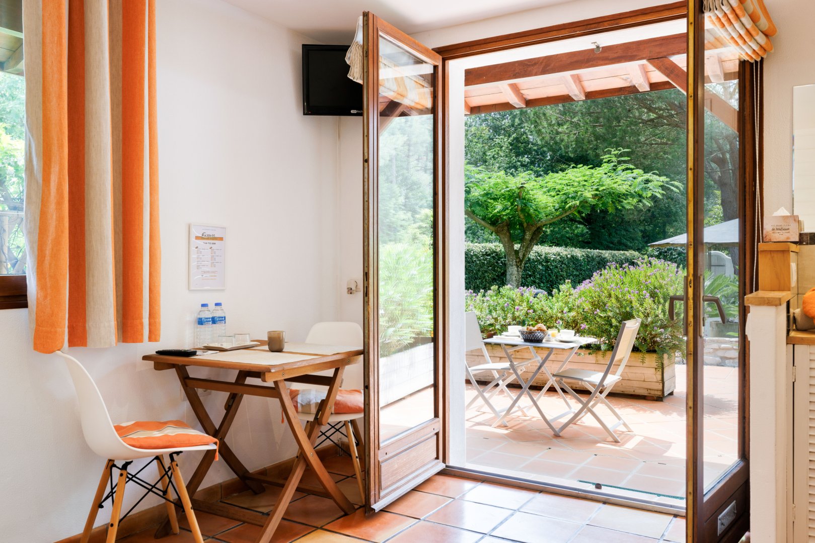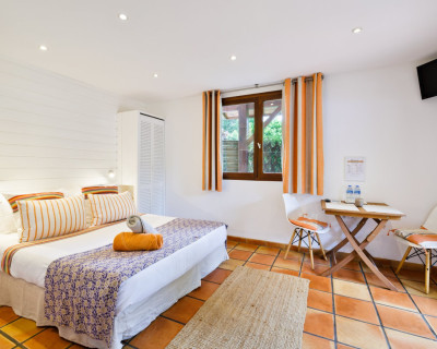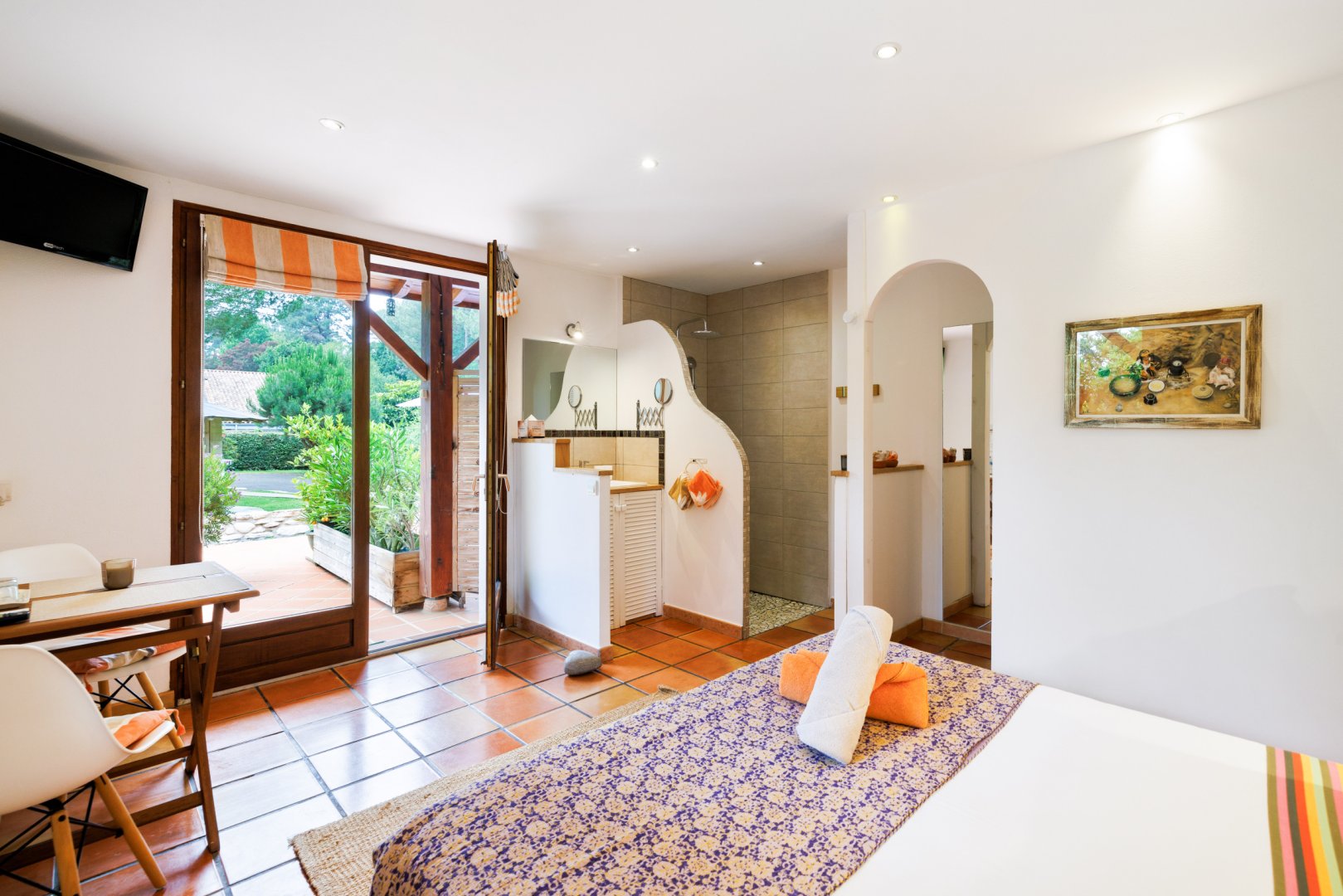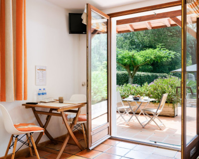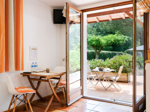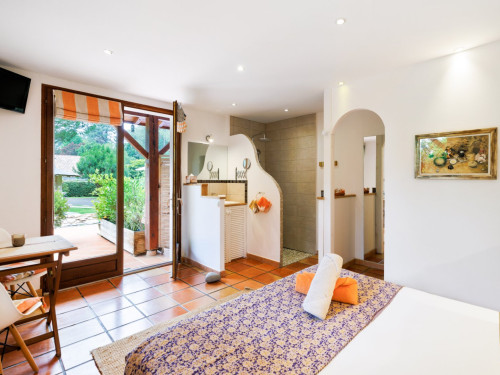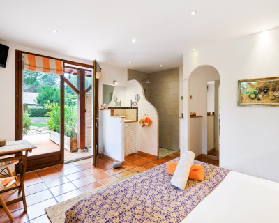 Très belle chambre, propre, spacieuse donnant accès à une terrasse privative. Cuisine extérieure (frigo, cuisson, vaisselle, évier...) mise à notre disposition.