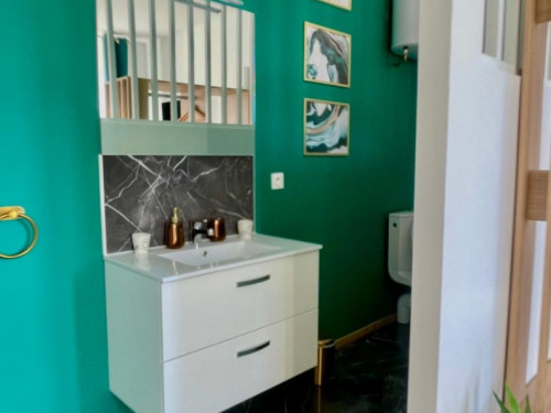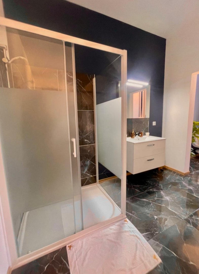 Elle est équipée de tout le confort privatif ( salle d’eau, wc, télévision…