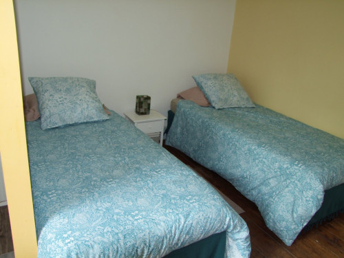 Chambre dans leur maison, décoré avec goût, un lit et un matelas super, salle de douche dans la chambre et wc.